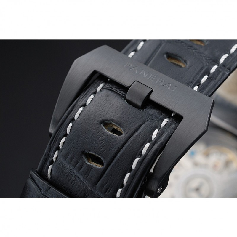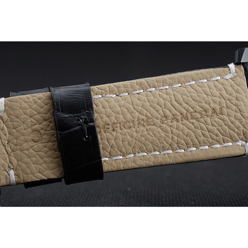 pulsera: cuero Negro correa con costura blanca y en relieve de calor sello Luminor Panerai y acero inoxidable de gancho hebilla de cierre de ion-plateado con Panerai grabado