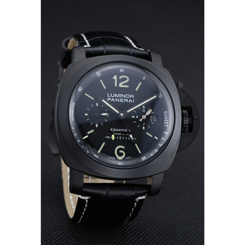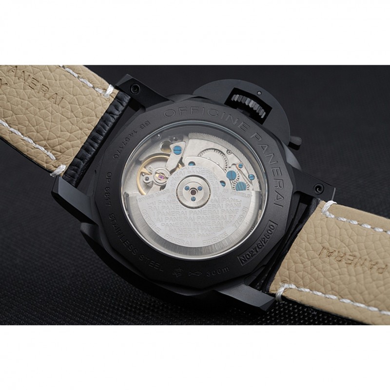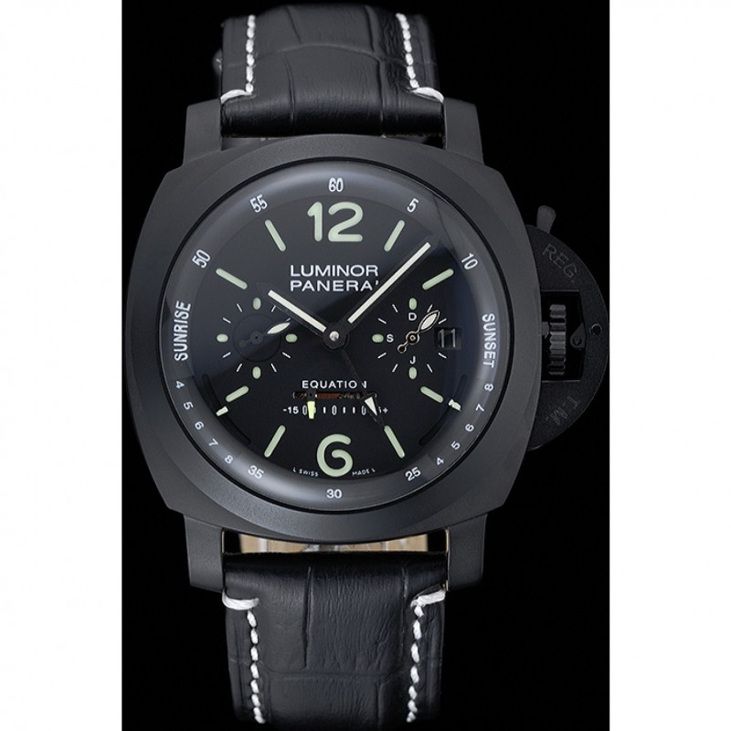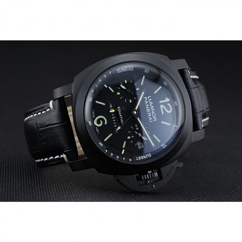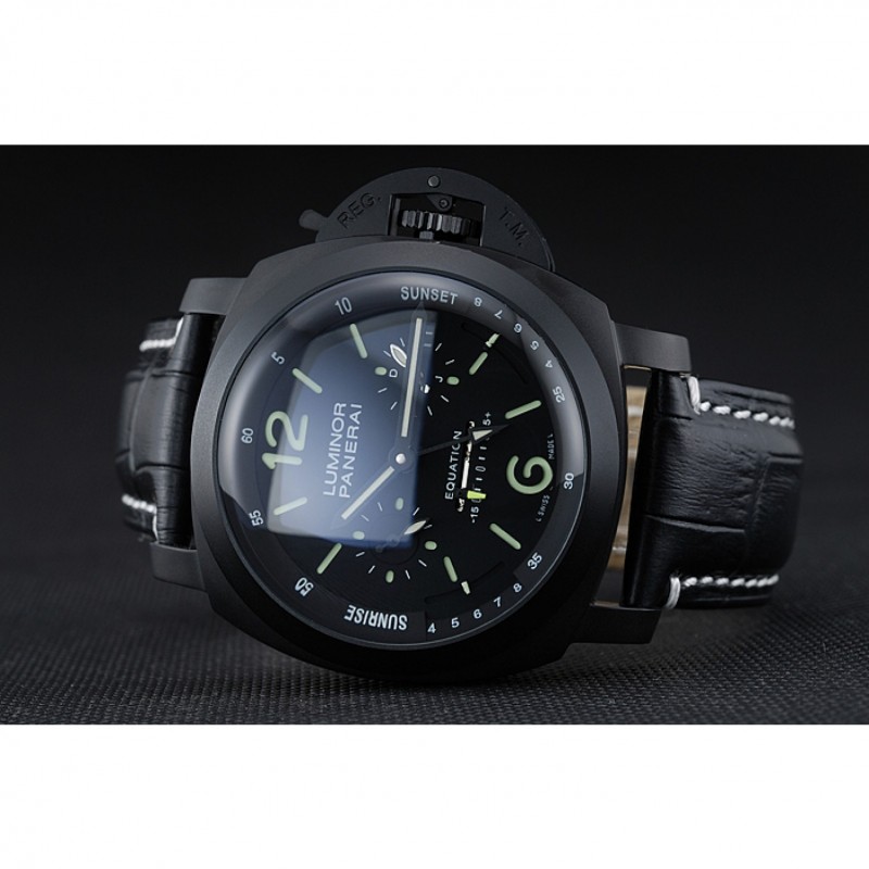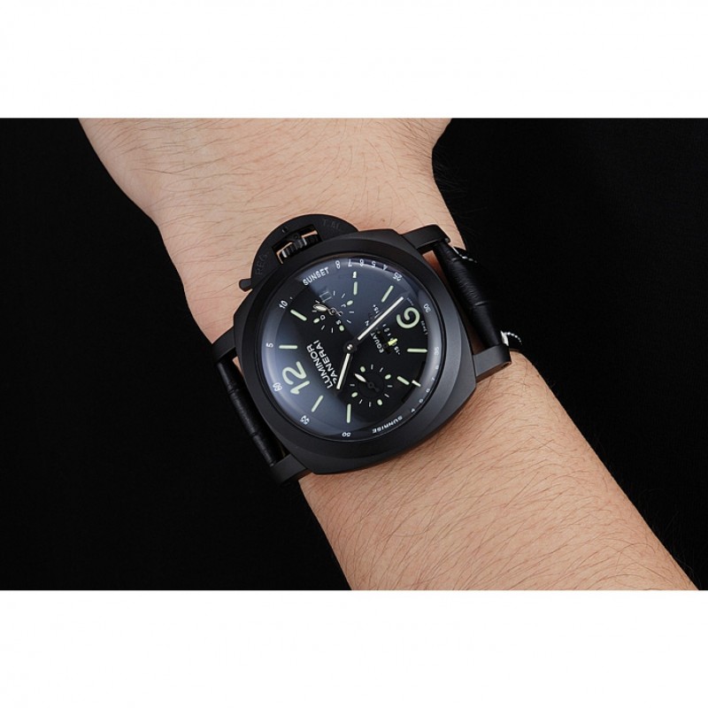 Panerai Luminor Negro ionizada caja de acero inoxidable Negro Dial correa de cuero Negro 98162