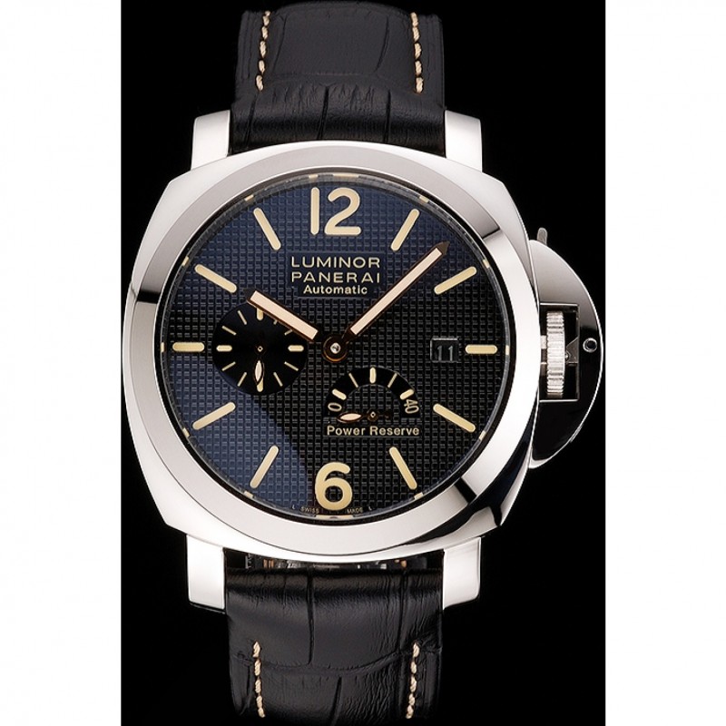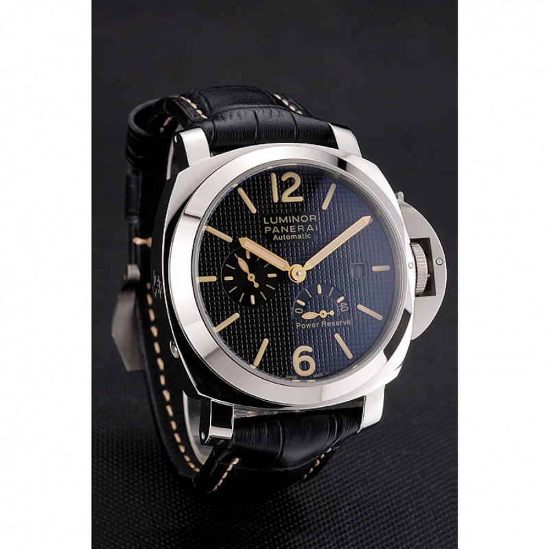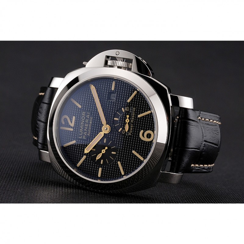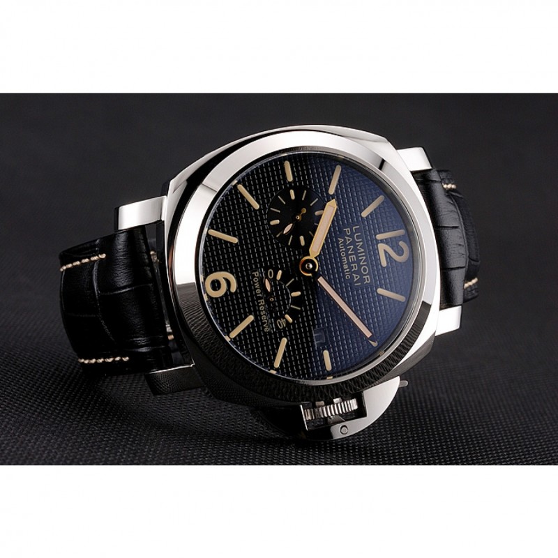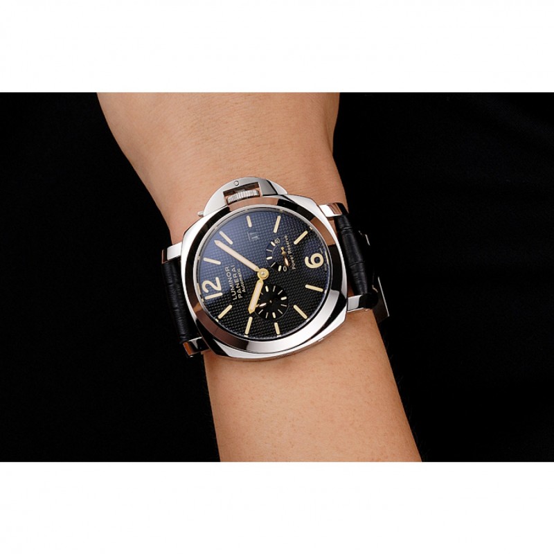 Panerai Luminor reserva de energía automático Negro Dial correa de cuero en relieve de caja de acero inoxidable Negro
