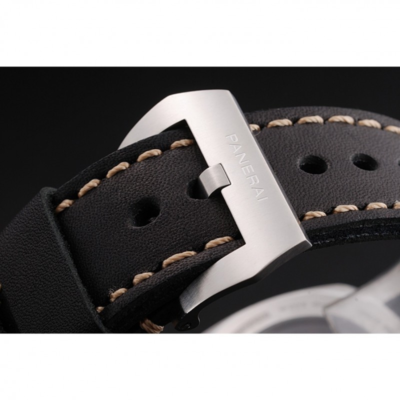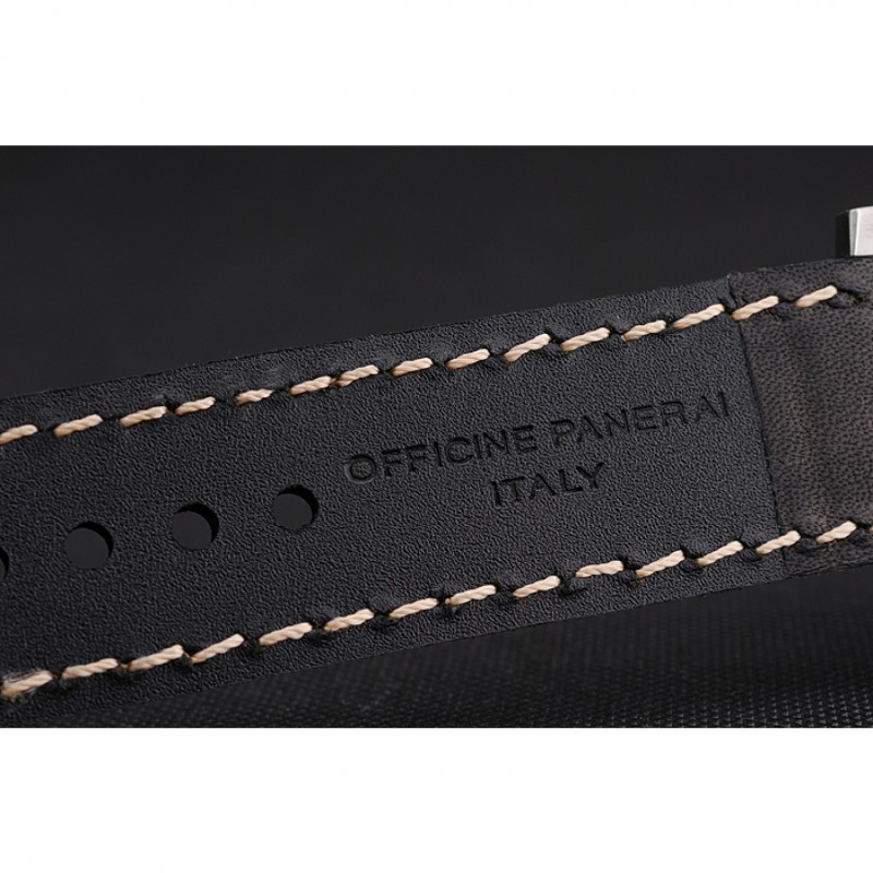 pulsera: Officine Panerai Italia calor en relieve correa de cuero negro con costuras de hilo blanco y Panerai grabado de ion-plateado gancho hebilla de cierre