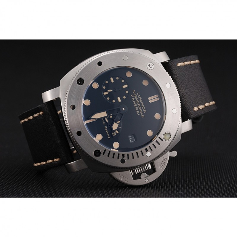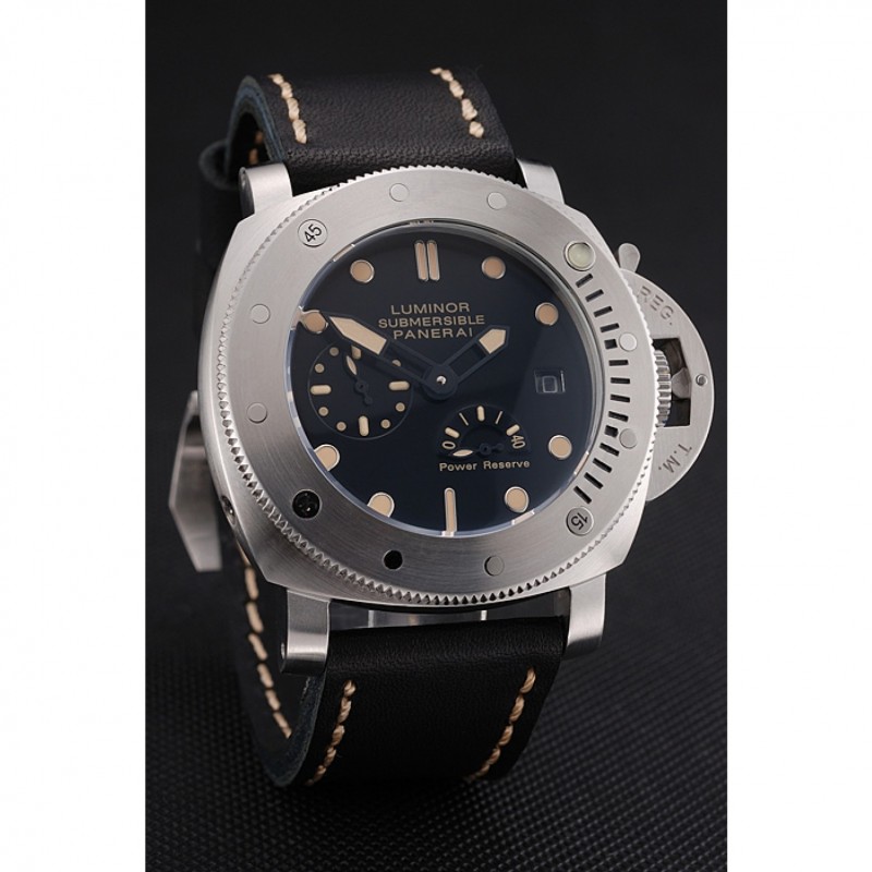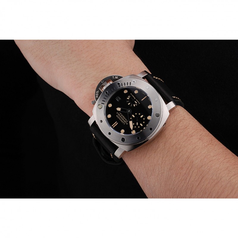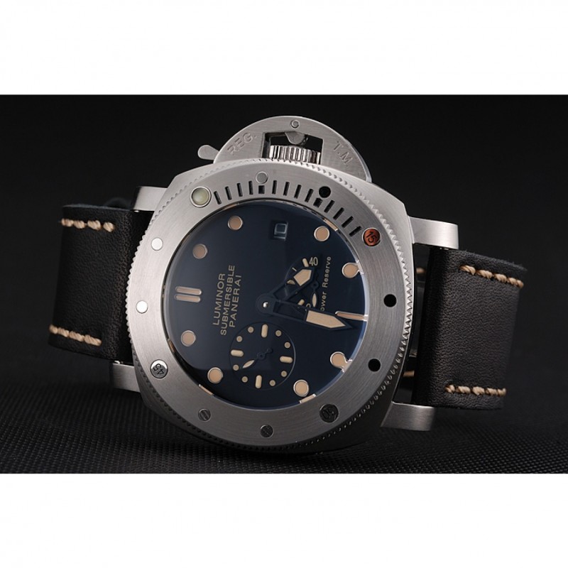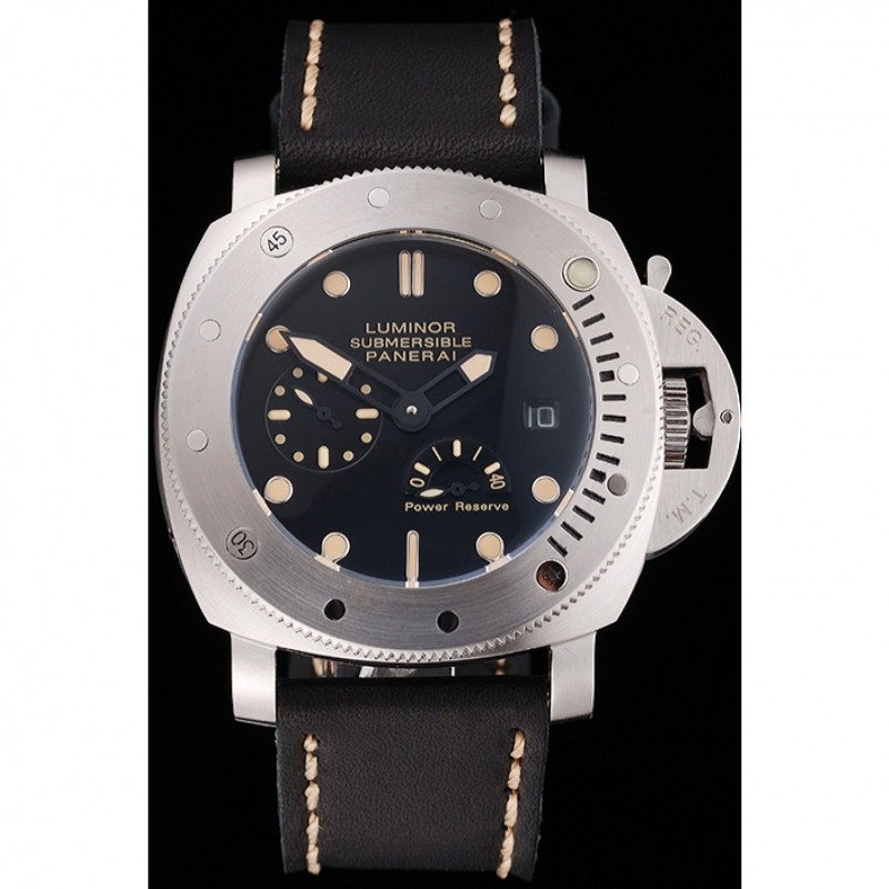 Panerai Luminor sumergibles Negro Dial correa de cuero caja de acero inoxidable Negro