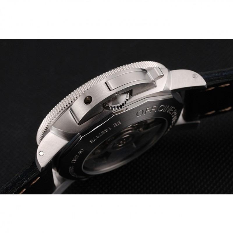 Volver: de acero inoxidable cepillado complemento de vuelta con transparentes mecánica-revelando atrás y grabados Officine Panerai