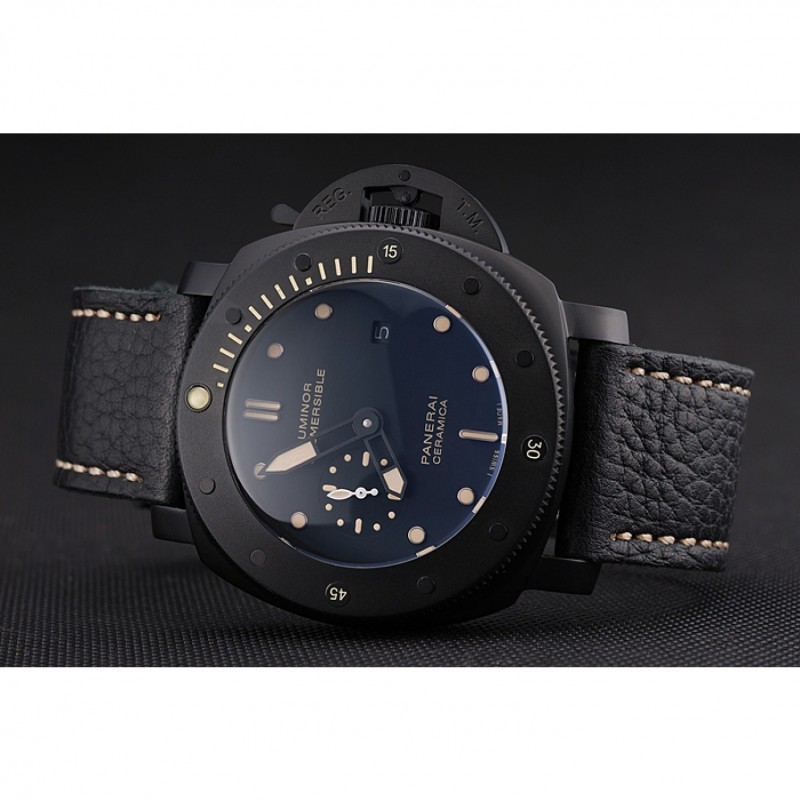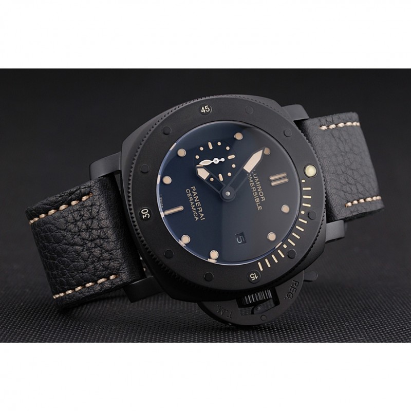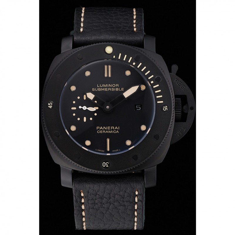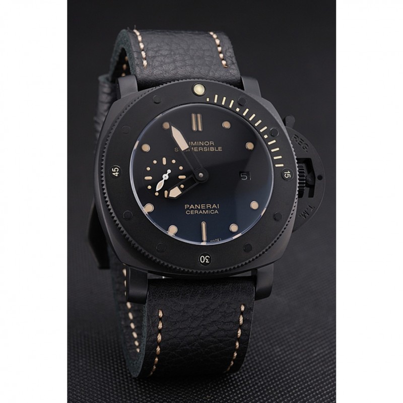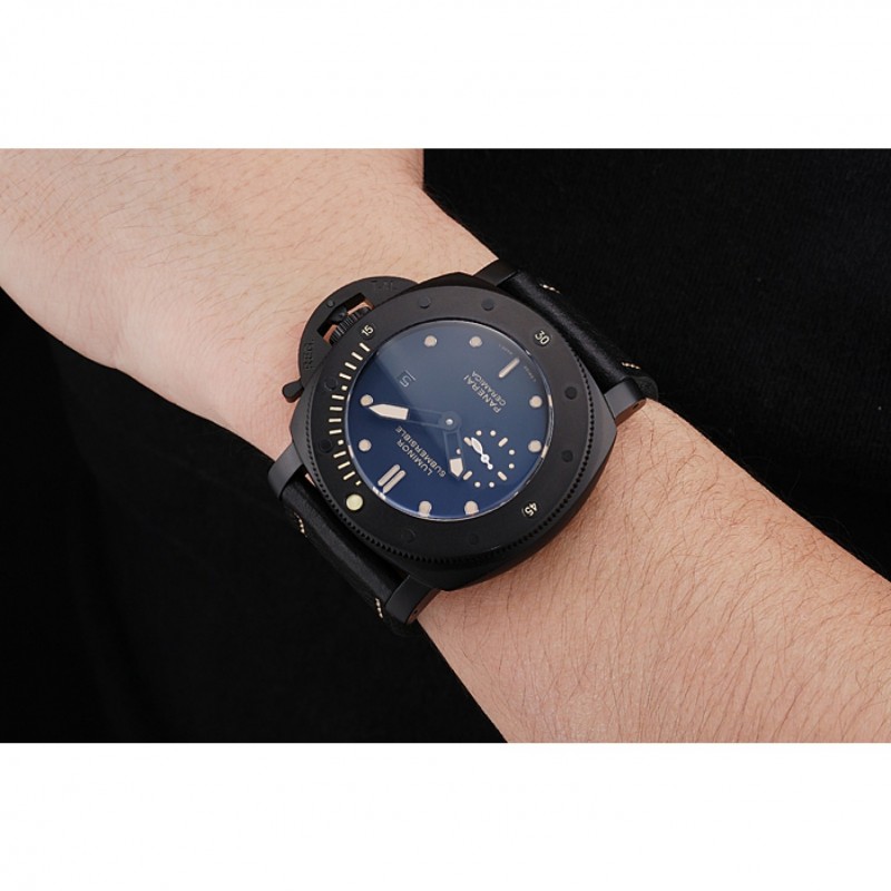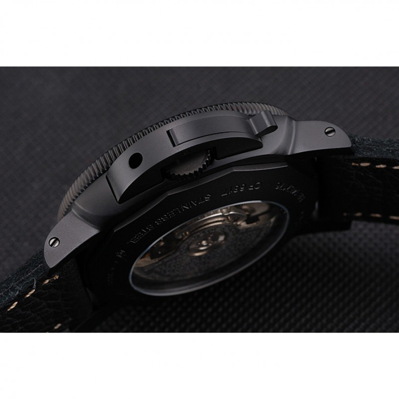 Panerai Luminor sumergibles Negro Dial correa de cuero de la caja Negro Negro