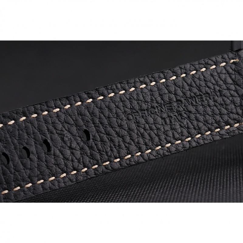 pulsera: Officine Panerai Italia calor de cuero negro en relieve correa con costura hilo blanco y Panerai grabado ion-plateado gancho hebilla de cierre