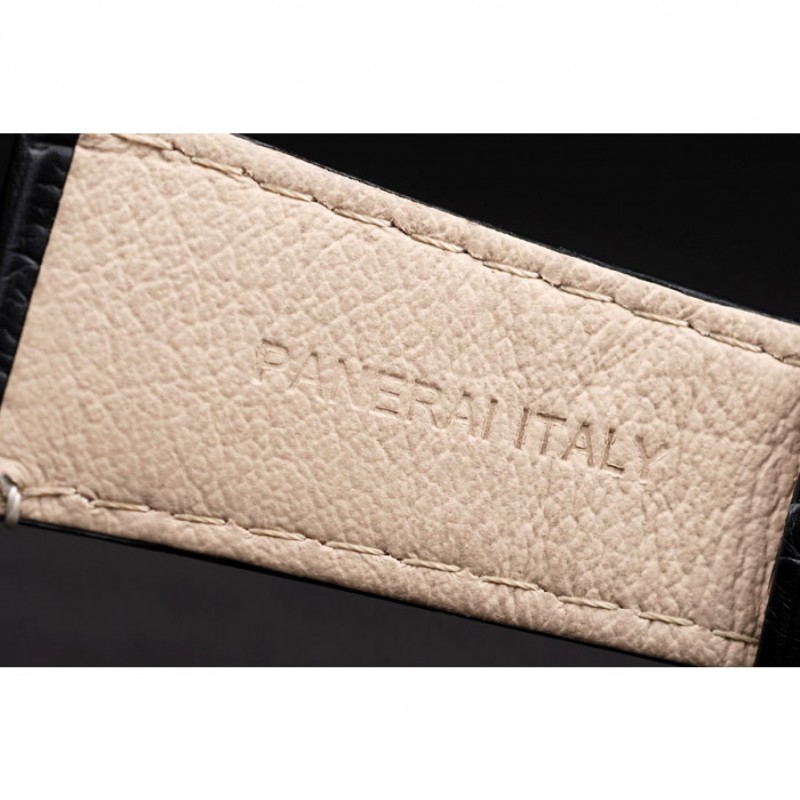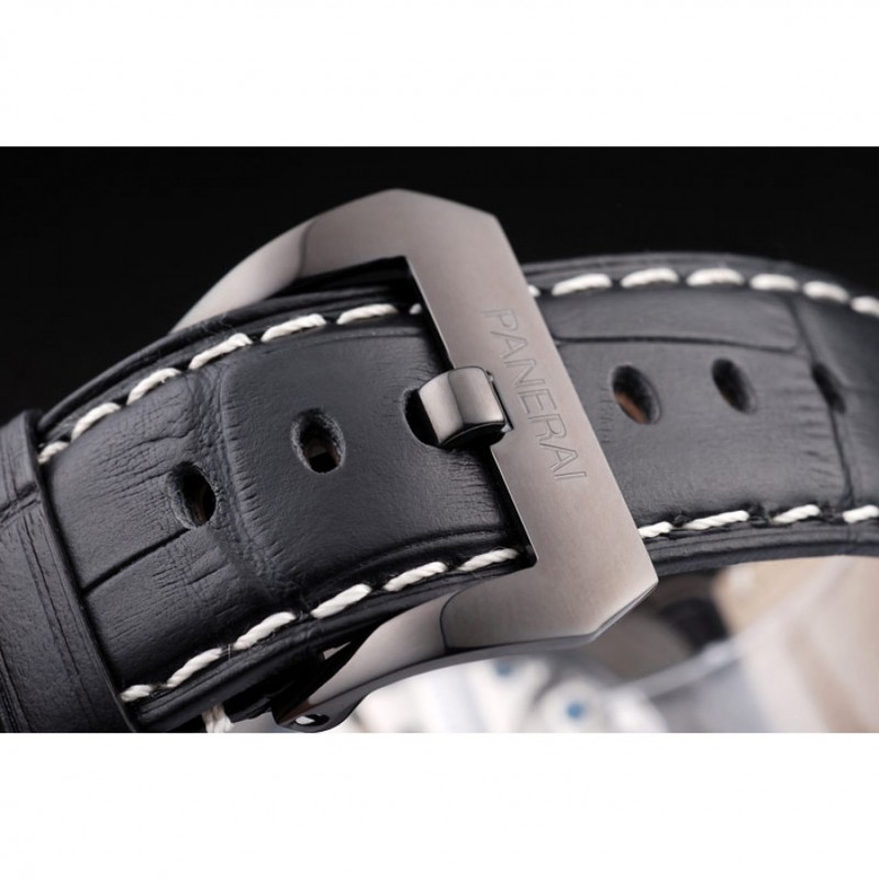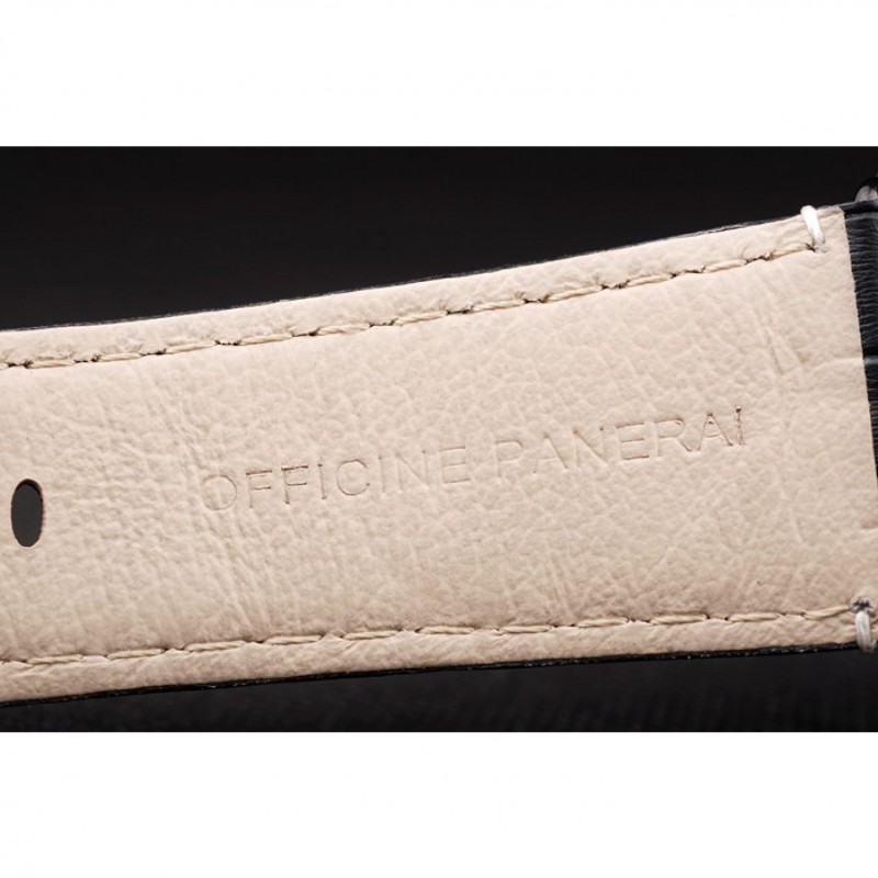 pulsera: cocodrilo Negro correa de cuero con costuras de color blanco y el calor en relieve Officine Panerai Italia sello y cierre de gancho hebilla de ión-plateado con Panerai grabado