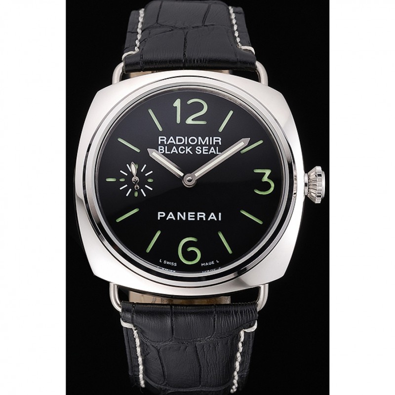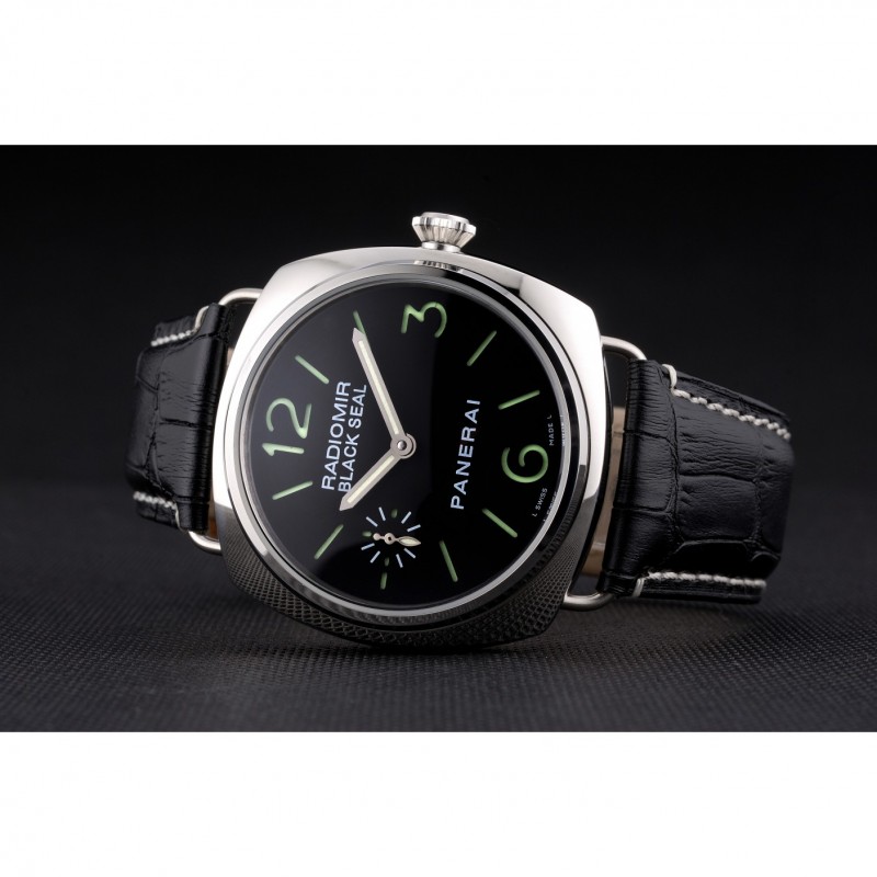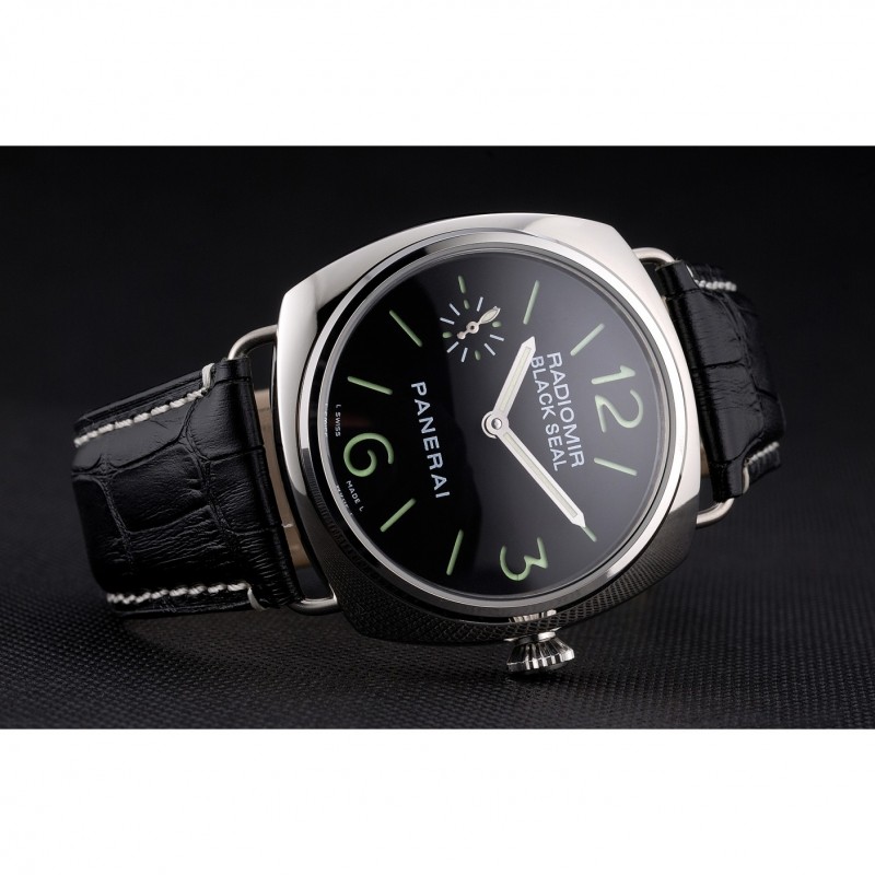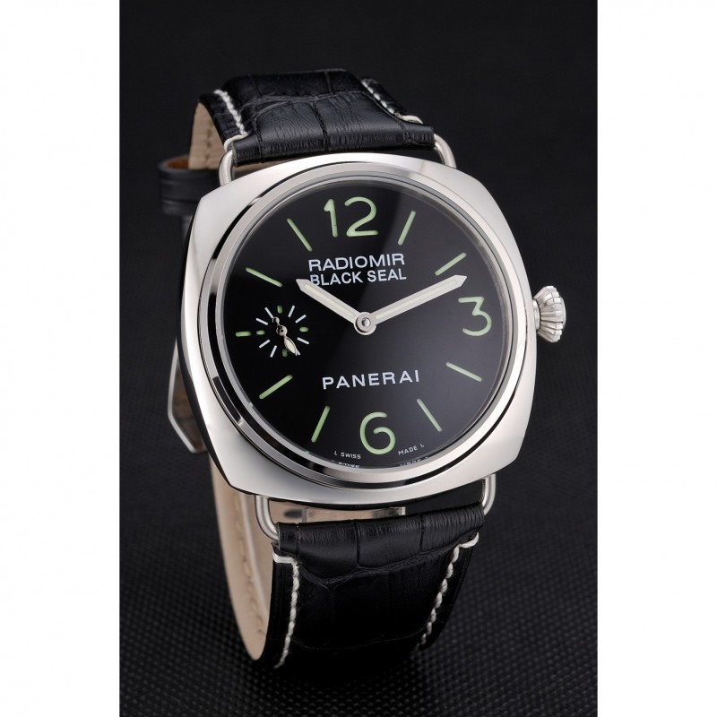 Panerai Negro Sello Negro Dial pulsera de cuero Negro