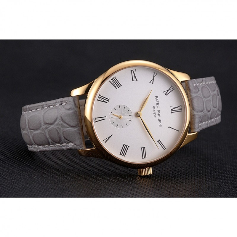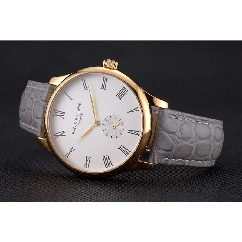 pulsera: Patek Philippe y logo calor en relieve correa de piel de cocodrilo gris con Patek Philippe y el logotipo inscrito 18k oro amarillo plateado gancho hebilla de cierre