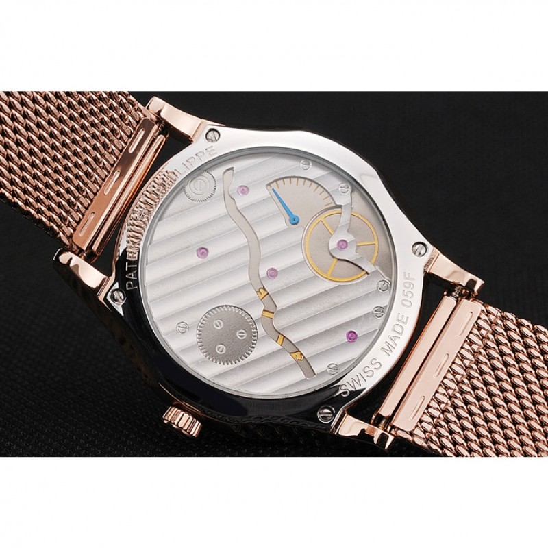 Crown: 18k logo Patek Philippe tallada rosa-chapado en oro cutwork corona