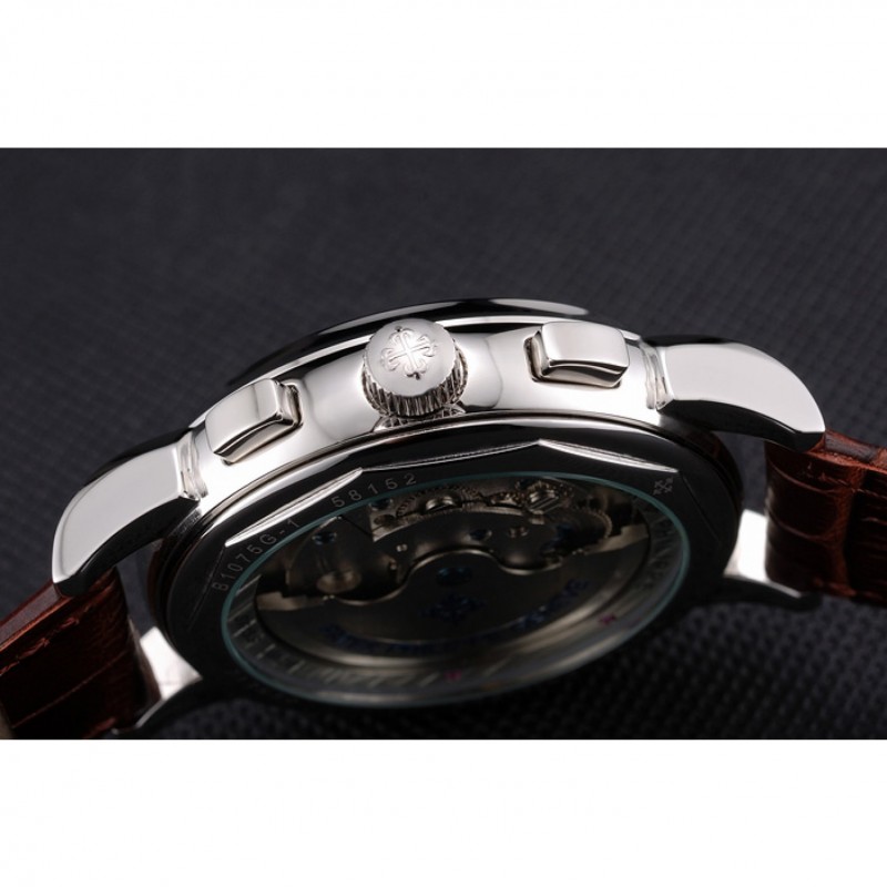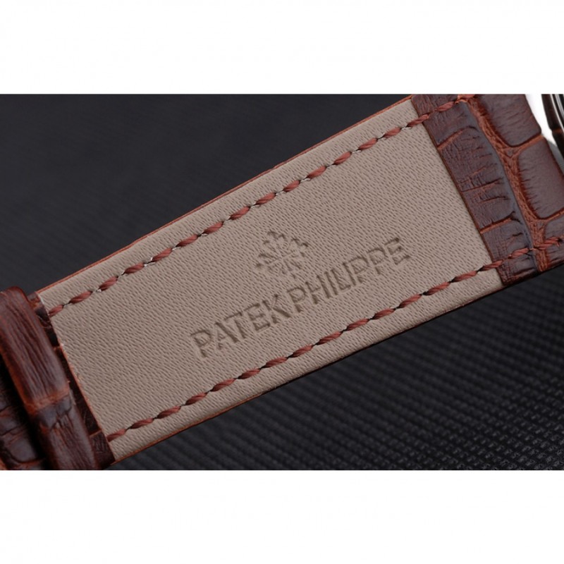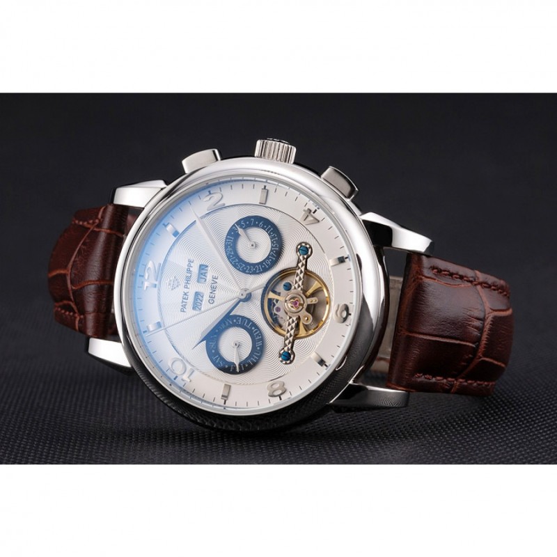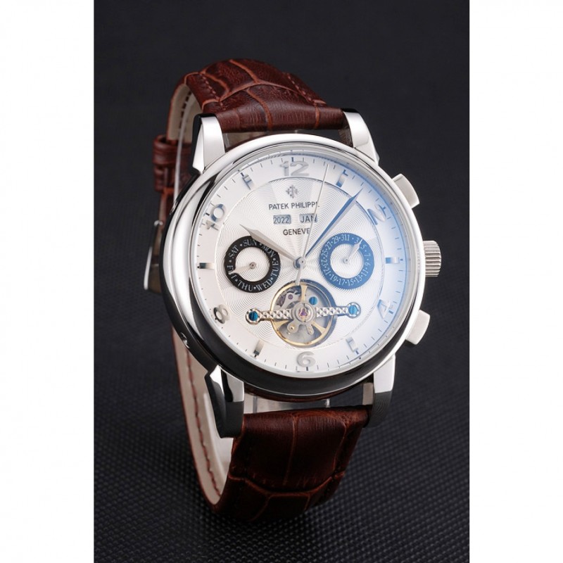 Patek Philippe Calendario Perpetuo Tourbillon esfera blanca correa de cuero caja de acero inoxidable de Brown