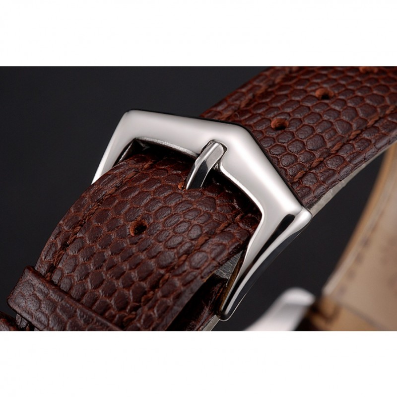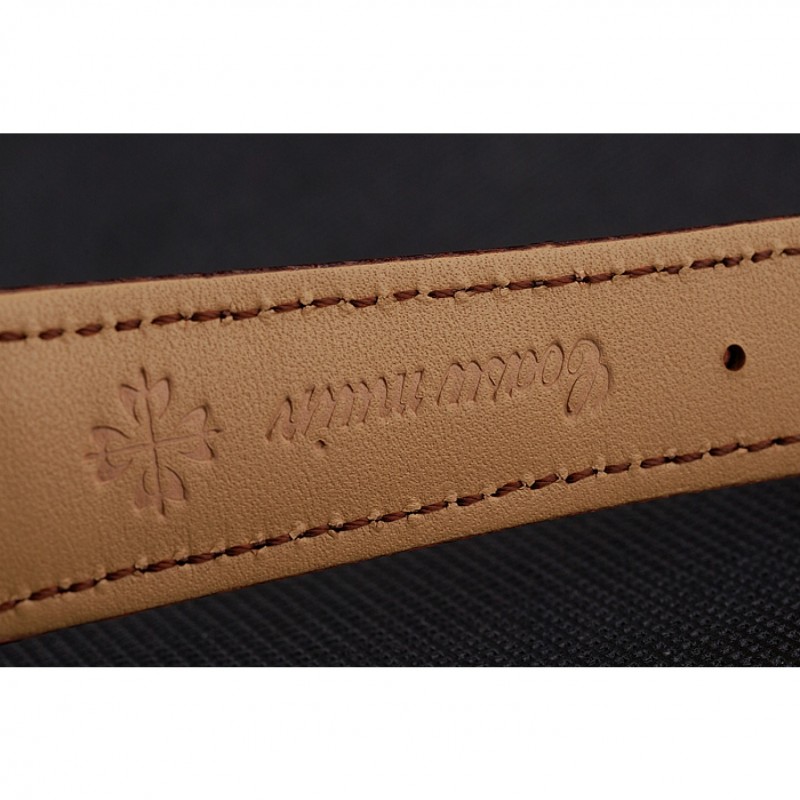 pulsera: logotipo y correa de cuero Patek Philippe de calor en relieve de piel de serpiente marrón con acero inoxidable pulido gancho hebilla de cierre
