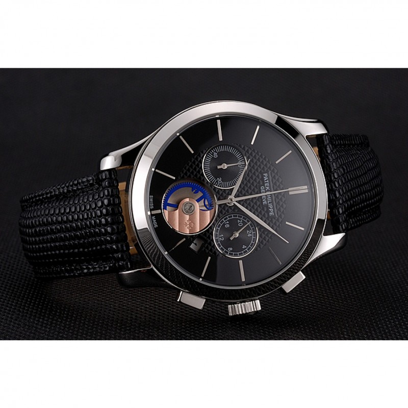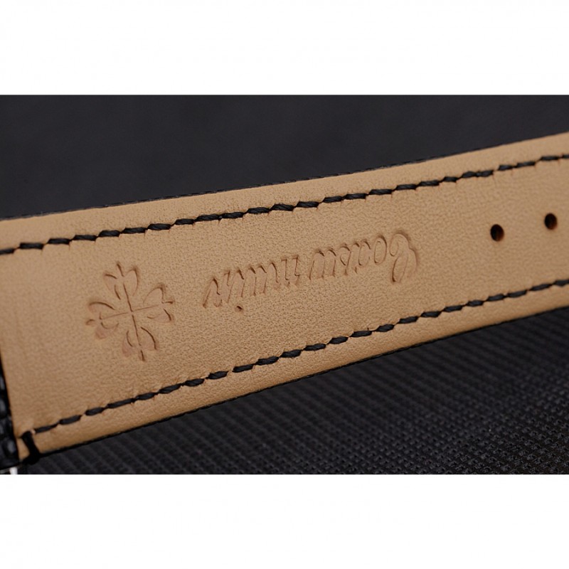 Patek Philippe Cronógrafo Negro Dial correa de cuero caja de acero inoxidable Negro