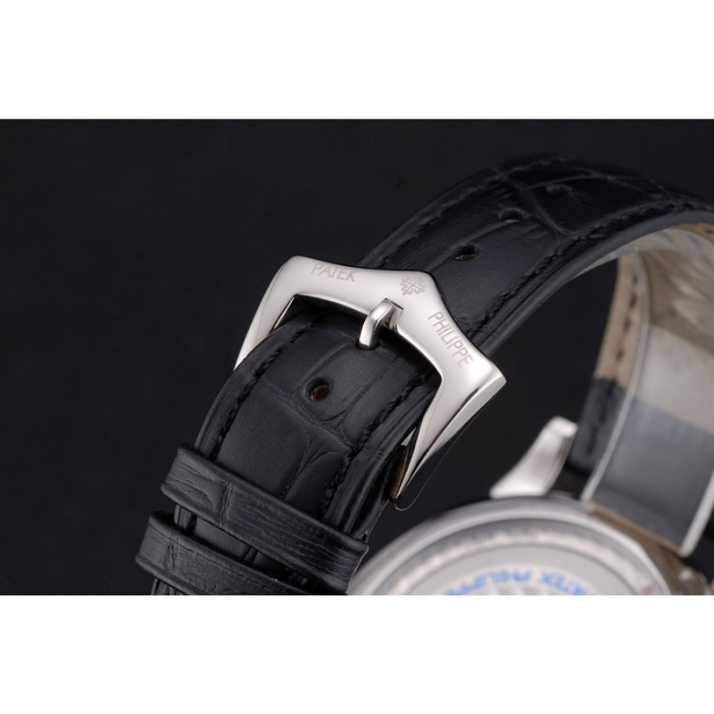 pulsera: Patek Philippe Geneve correa de piel de cocodrilo negro en relieve de calor con el logotipo y Patek Philippe inscrito pulida de acero inoxidable gancho hebilla de cierre