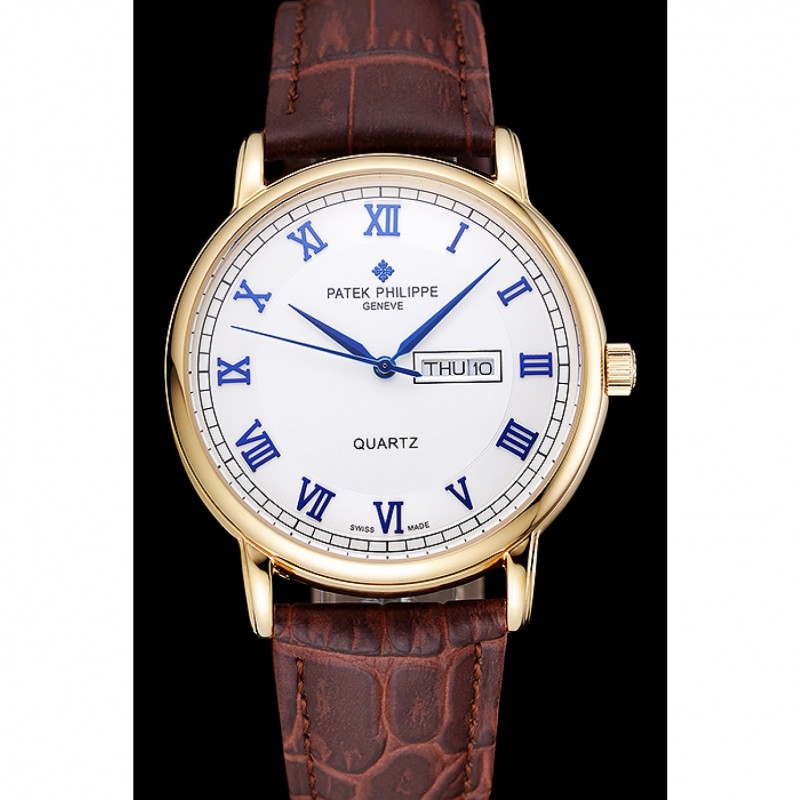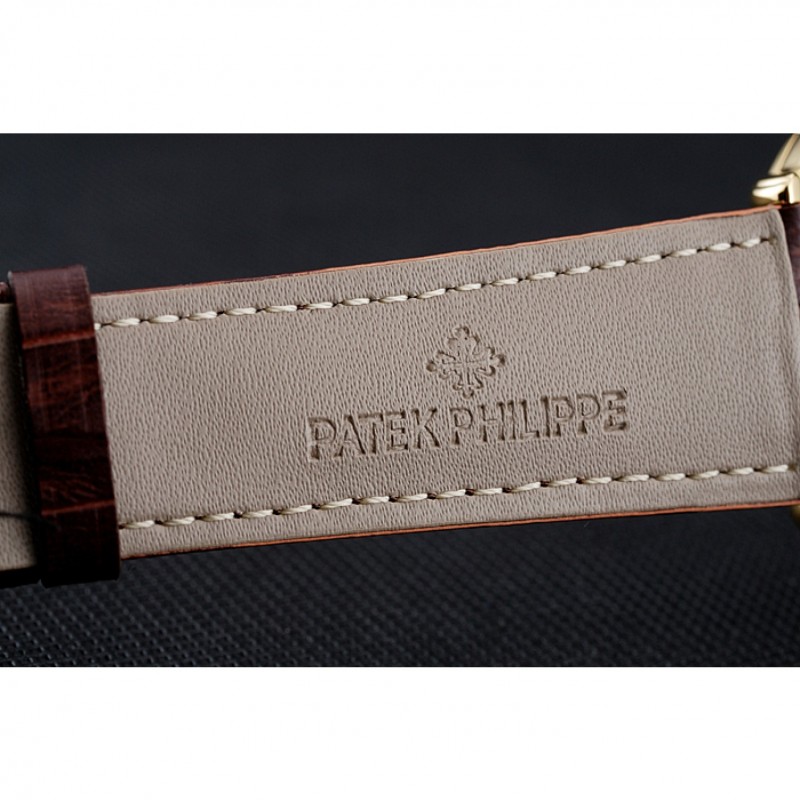 Patek Philippe Esfera Blanca Azul números romanos Caja Oro Brown pulsera de cuero 1454057