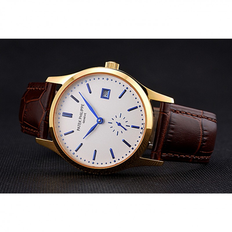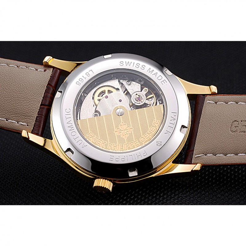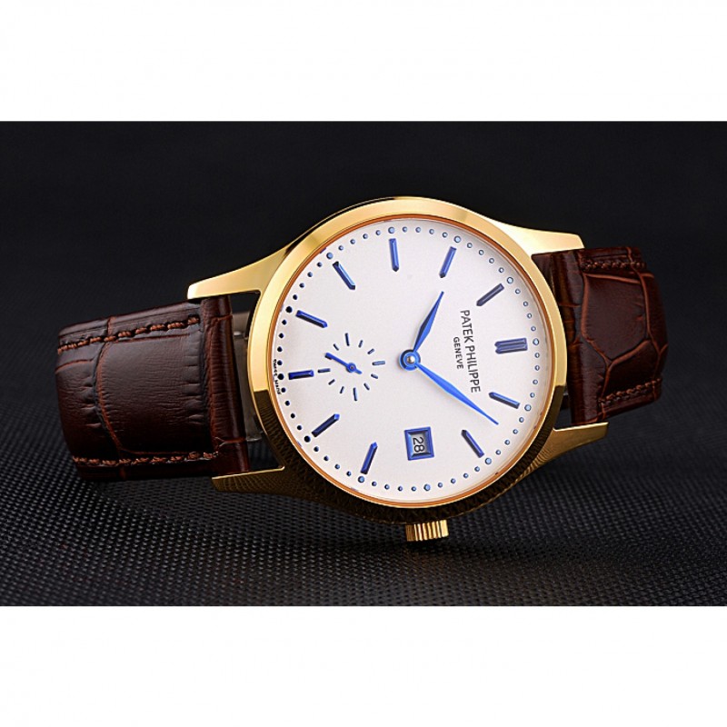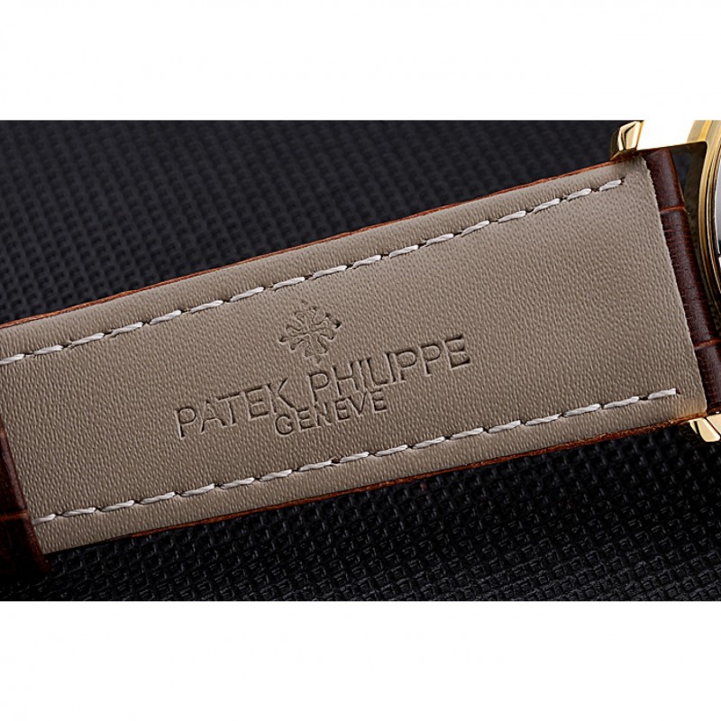 Patek Philippe Esfera Blanca Caja de oro Correa de cuero marrón 622844