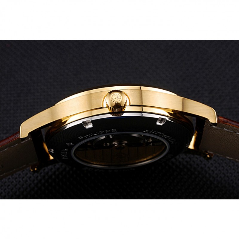 pulsera: Patek Philippe correa de piel de cocodrilo marrón en relieve Geneve y el logotipo de calor de 18 quilates en oro amarillo plateado gancho hebilla de cierre