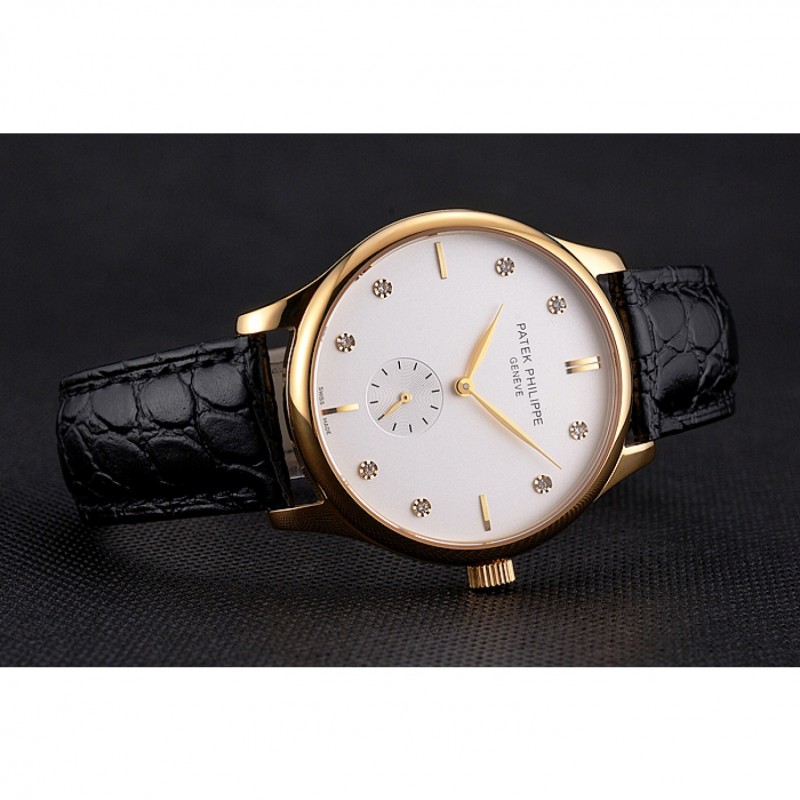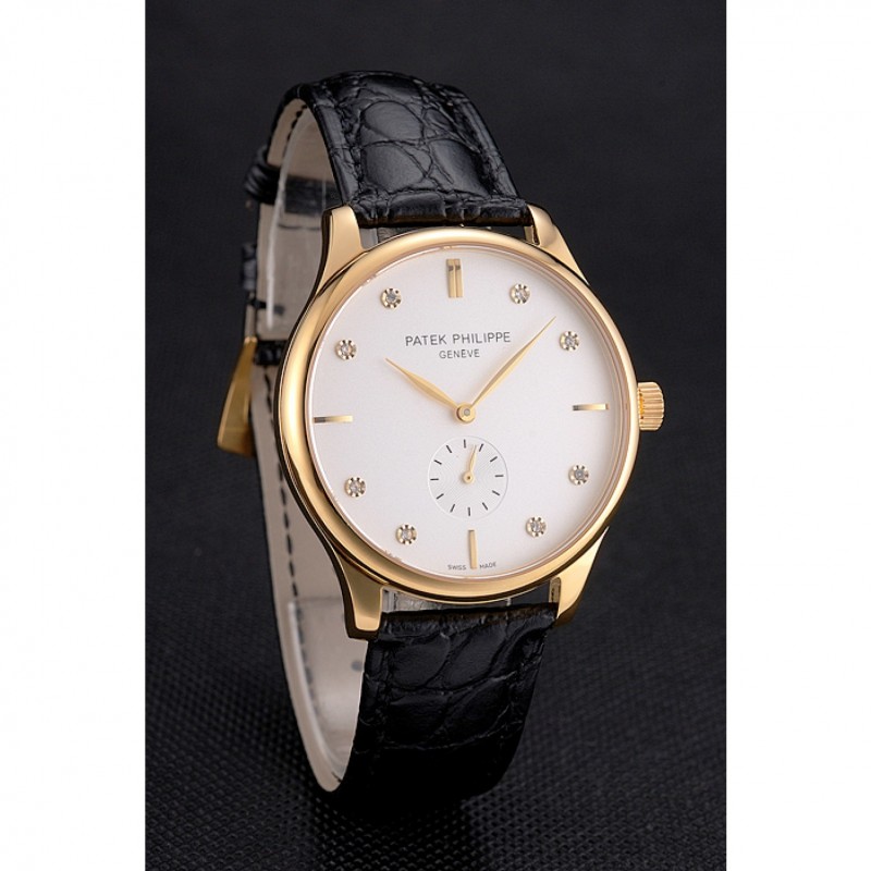 Patek Philippe Esfera Blanca, Correa de cuero del diamante Marcas Caja Oro Negro