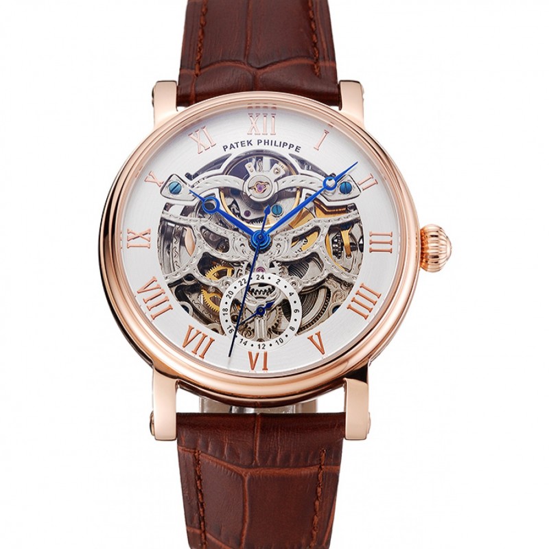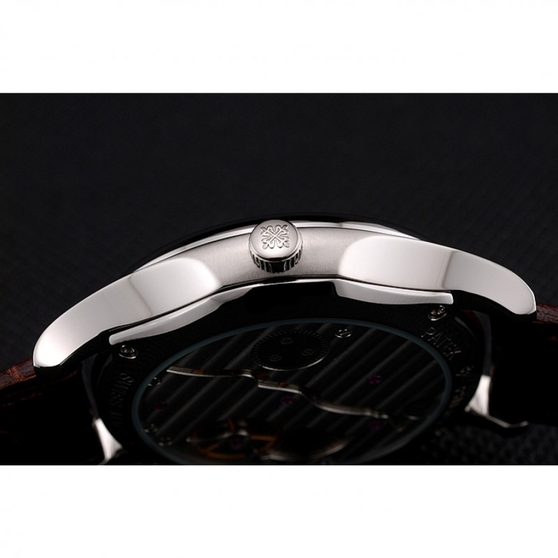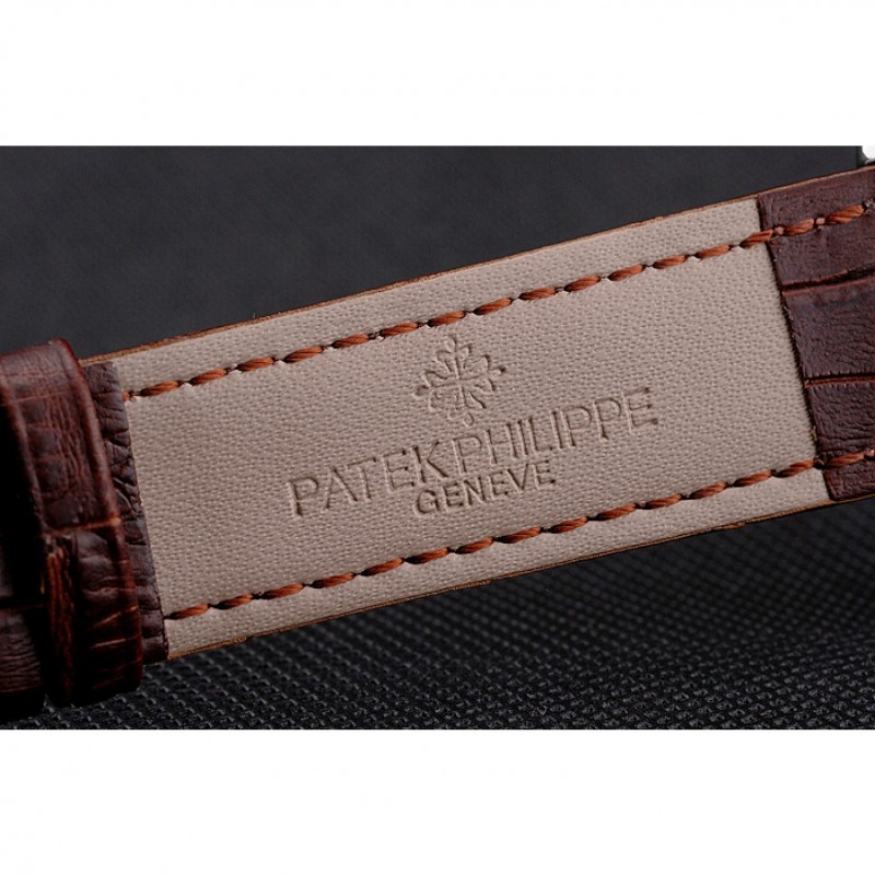 pulsera: logo y Patek Philippe calor correa de piel de cocodrilo marrón en relieve con el logotipo y Patek Philippe grabado de acero inoxidable pulido gancho hebilla de cierre