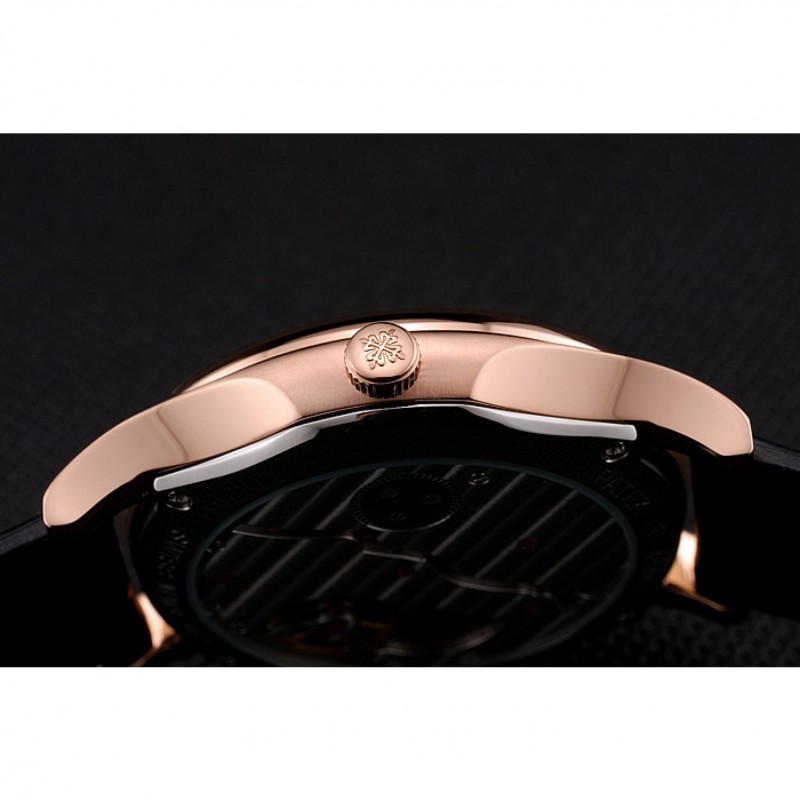 Crown: 18k logo Patek Philippe tallada rosa-chapado en oro cutwork corona