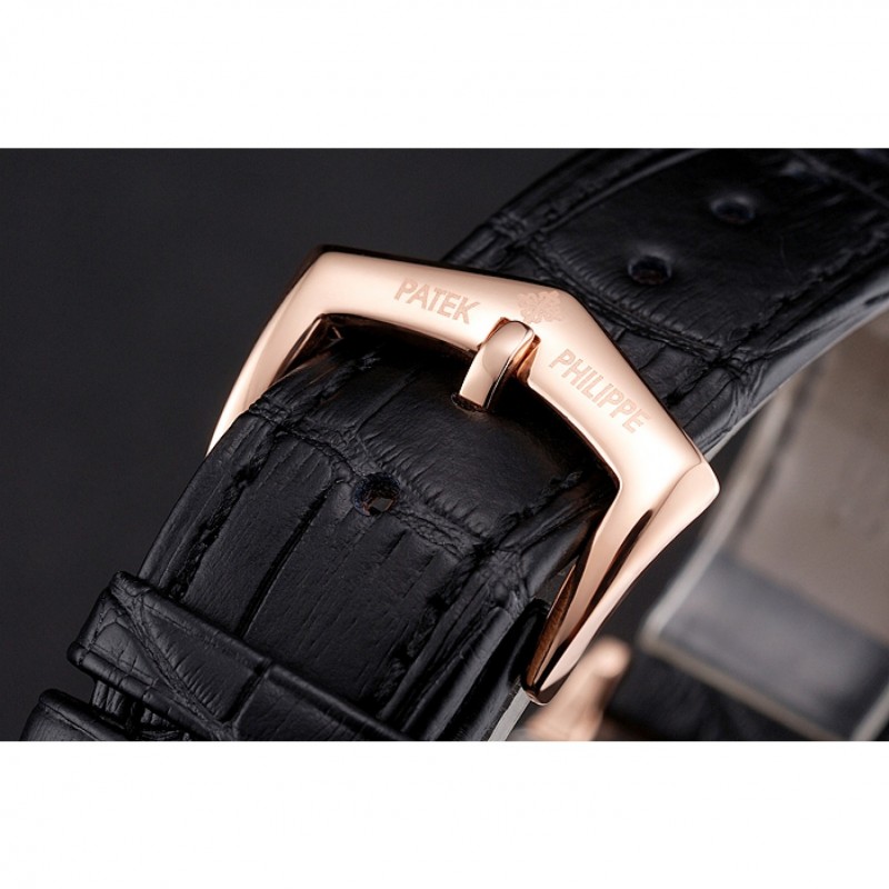 pulsera: logo y el calor Patek Philippe en relieve correa de piel de cocodrilo marrón con logotipo y Patek Philippe grabados rosa de 18 quilates chapado en oro gancho hebilla de cierre