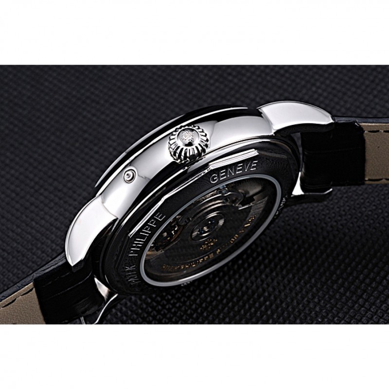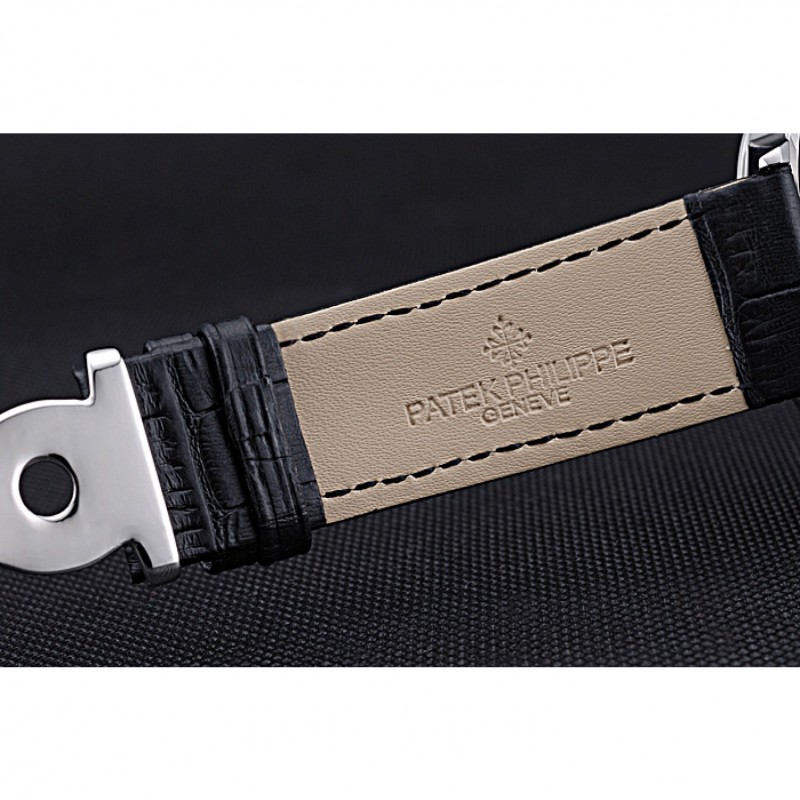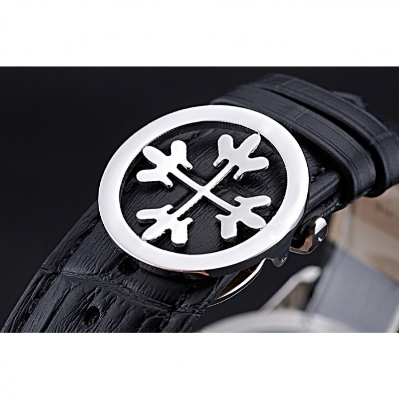 pulsera: logo y Patek calor Philippe Geneve en relieve correa de piel de cocodrilo negro con pulido calado de acero inoxidable logo corchete del gancho