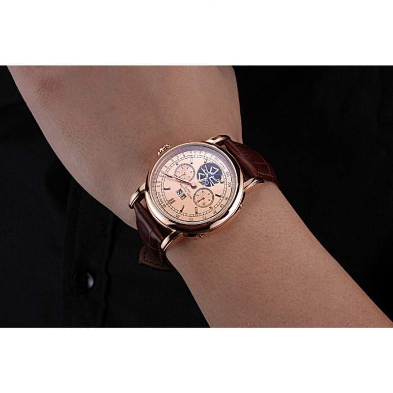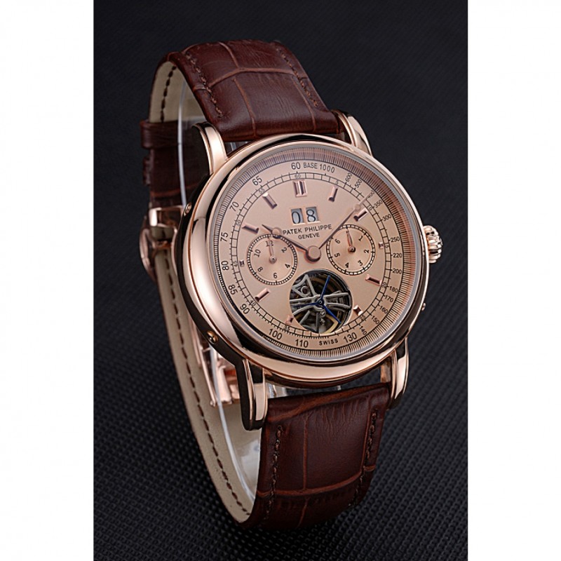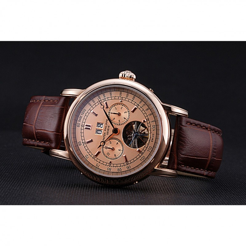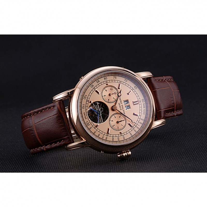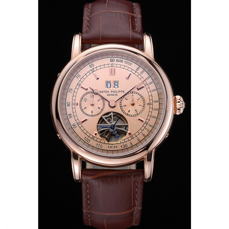 Patek Philippe Geneve Grand complicaciones Rose Dial Tourbillon Brown banda de cuero 622158