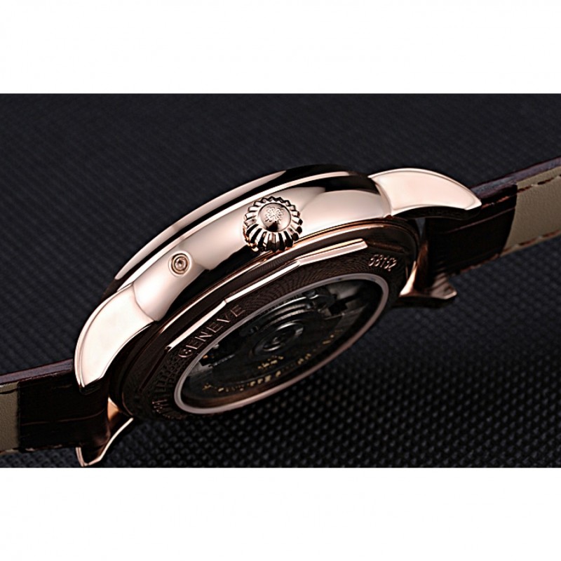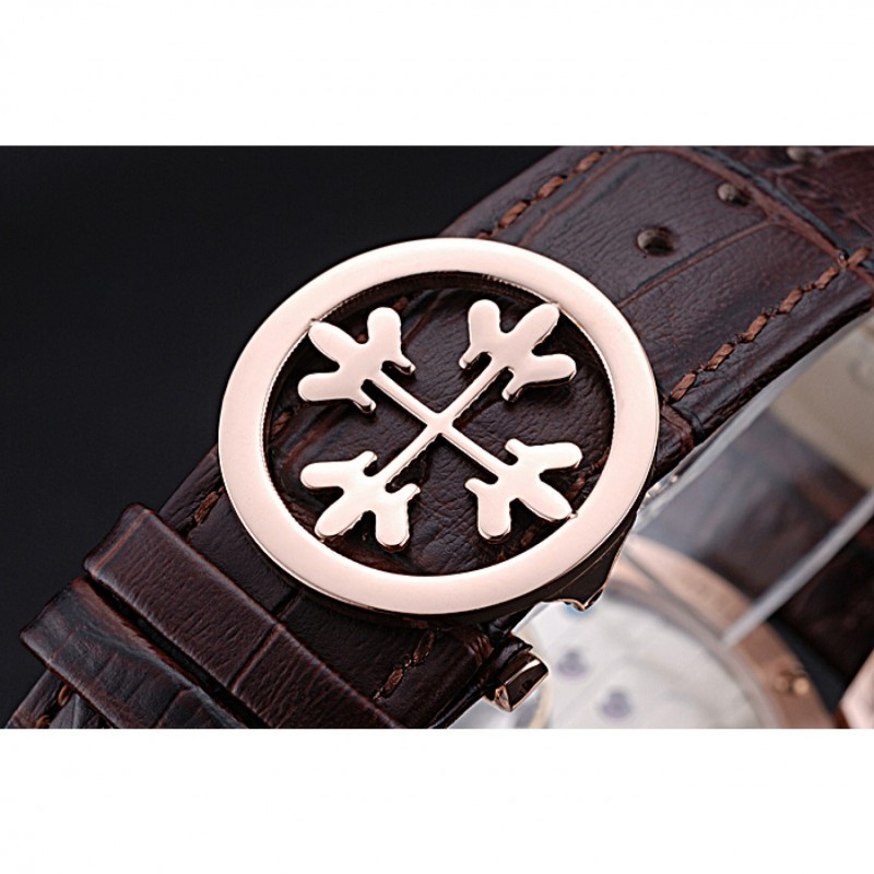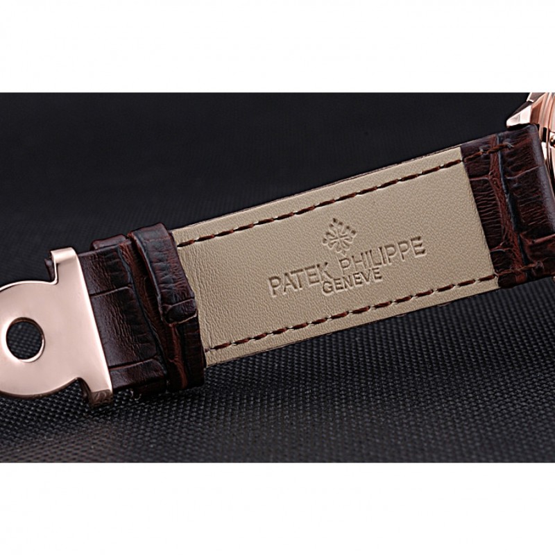 pulsera: logotipo y correa de piel de cocodrilo marrón en relieve de calor Patek Philippe Geneve rosa de 18 quilates chapado en oro calado logotipo corchete del gancho