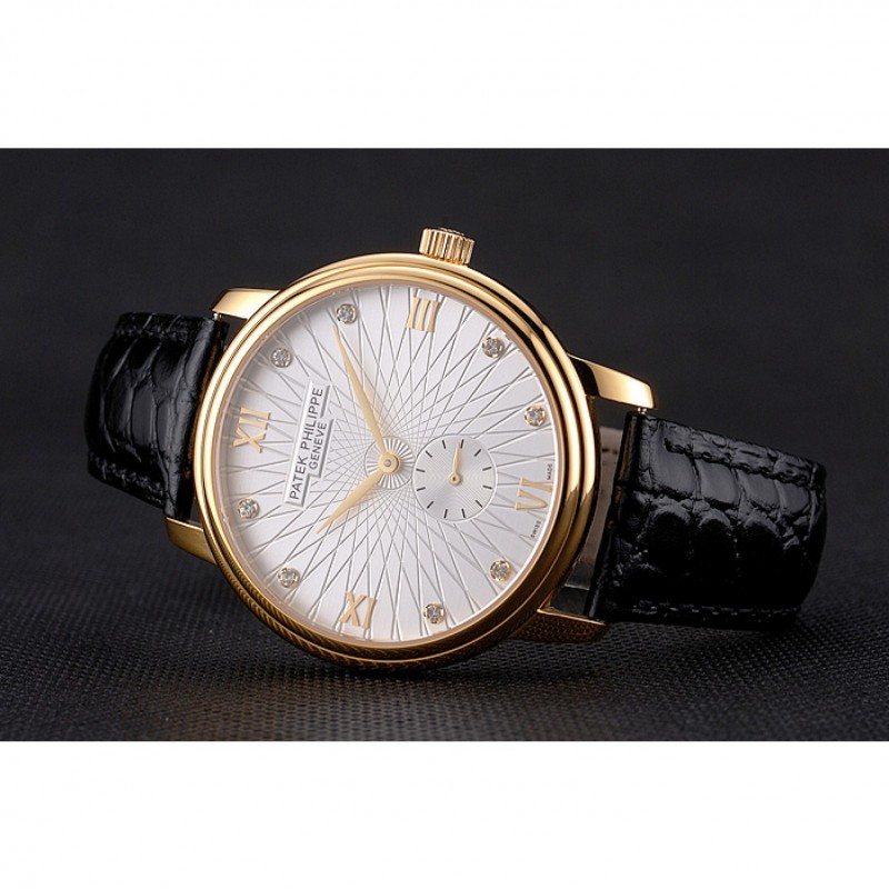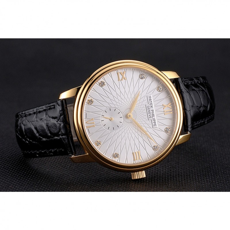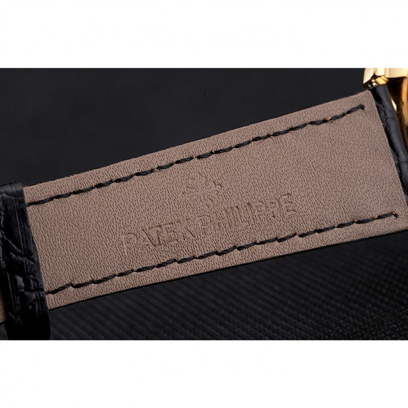 Patek Philippe grabada en relieve blanco Dial correa de cuero de la caja Negro Oro