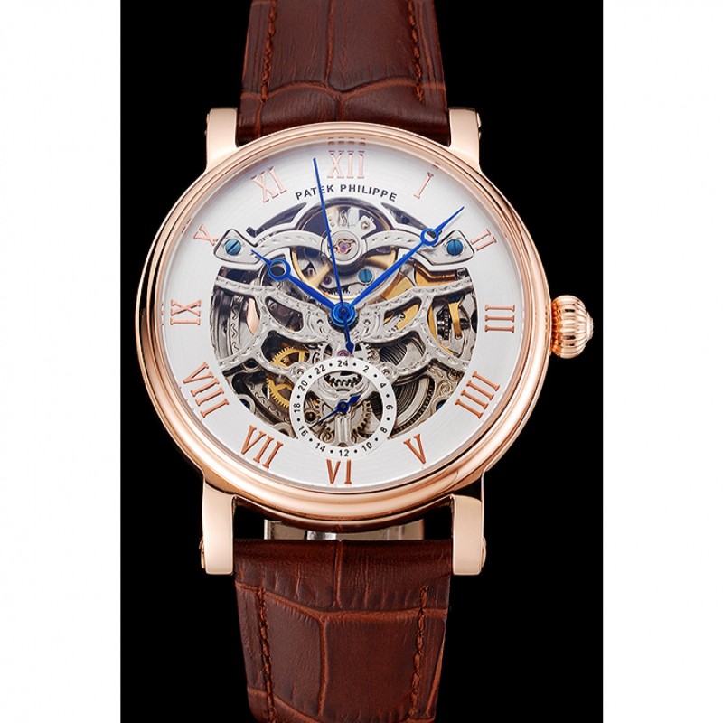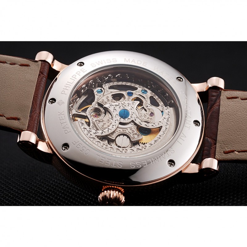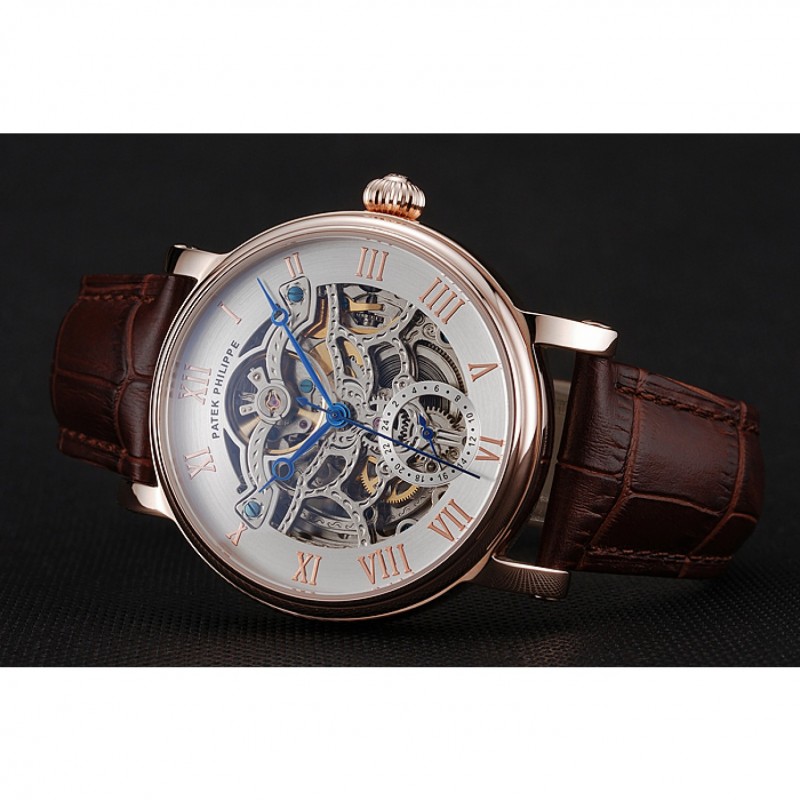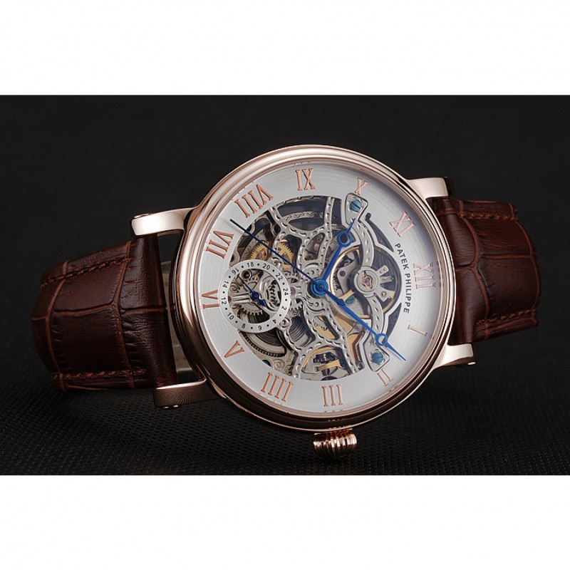 Patek Philippe Grand complicaciones blanca esqueleto de oro rosa Dial Marrón: correa de cuero 1453808
