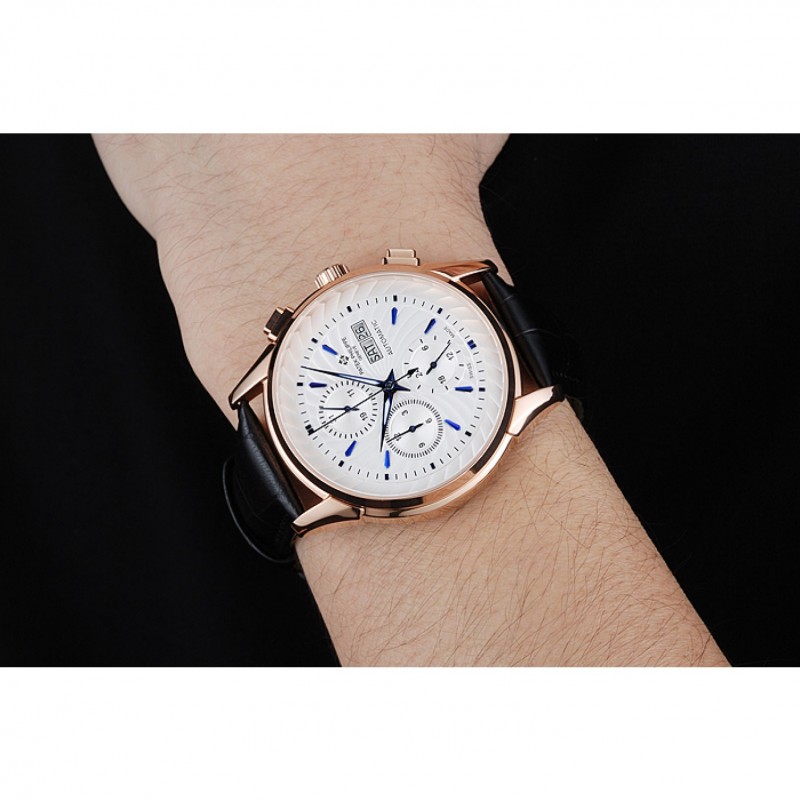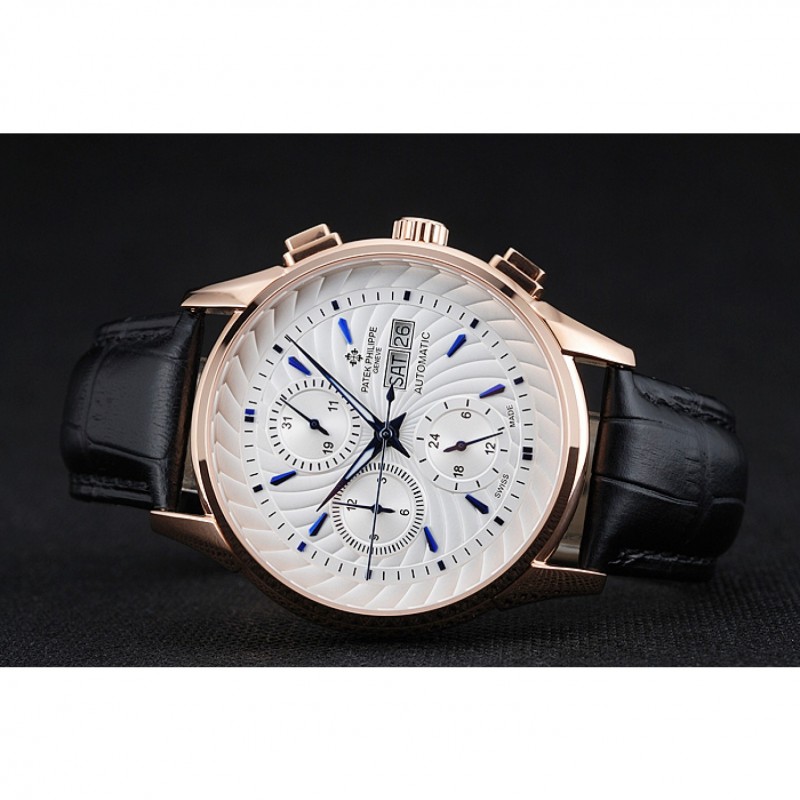 Patek Philippe Grand complicaciones Blanco Dial Caso Negro Oro Pulsera de cuero 1454240