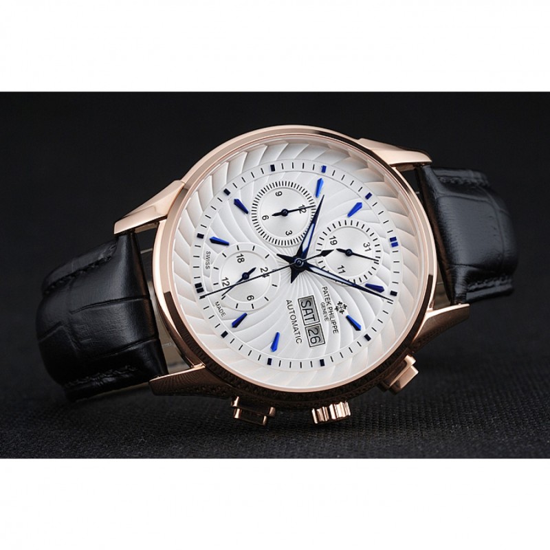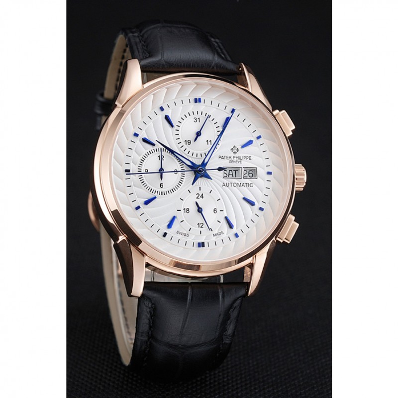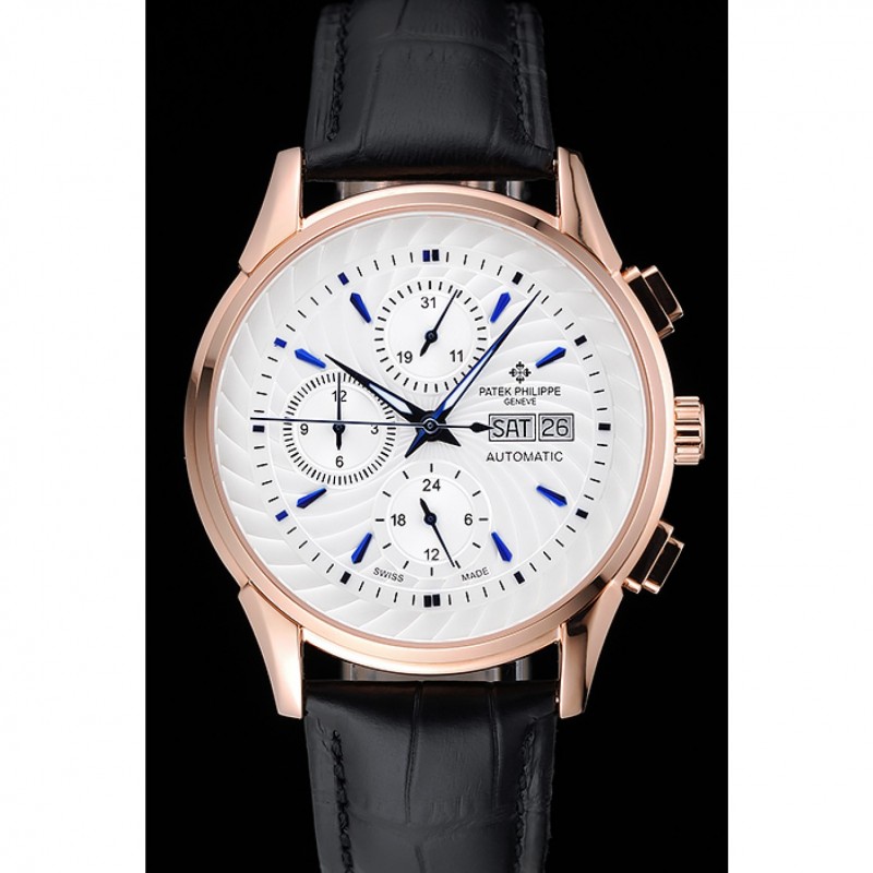 pulsera: Patek Philippe y correa de cuero de calor logotipo en relieve de cocodrilo negro con el logotipo de Patek Philippe 18k tallado de oro rosa plateado broche de gancho hebilla