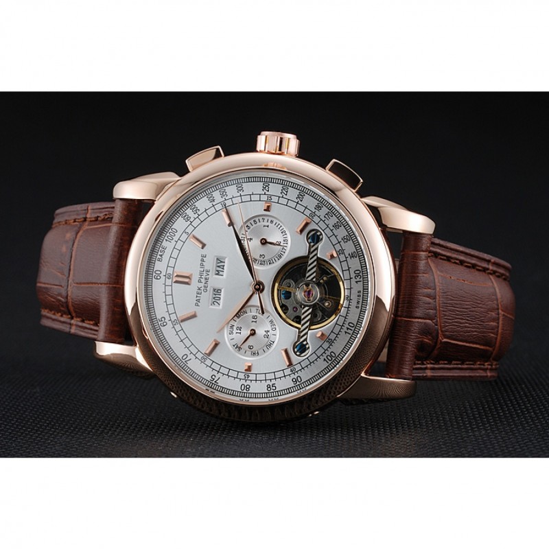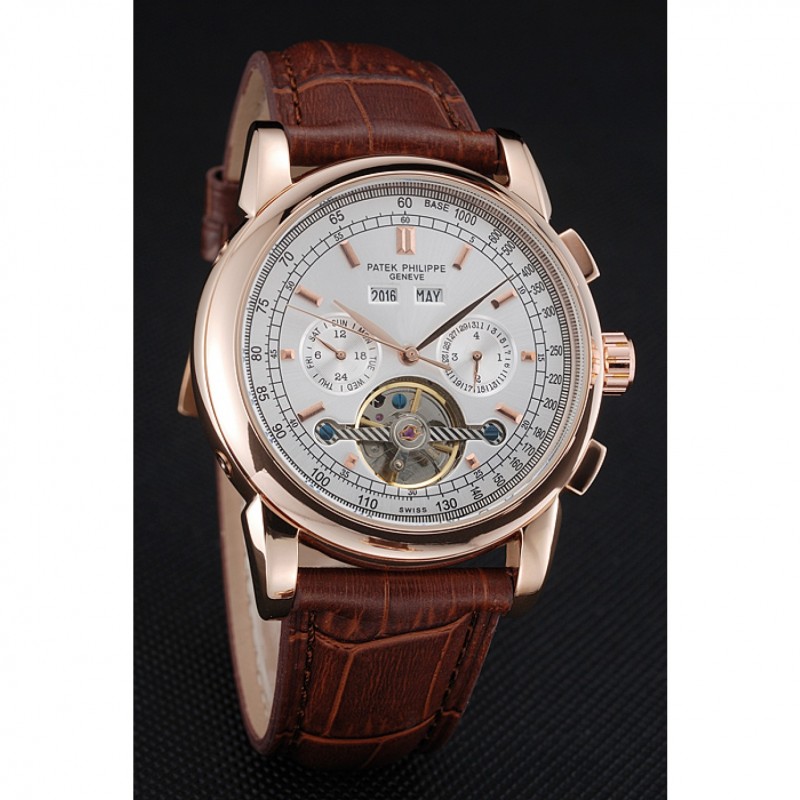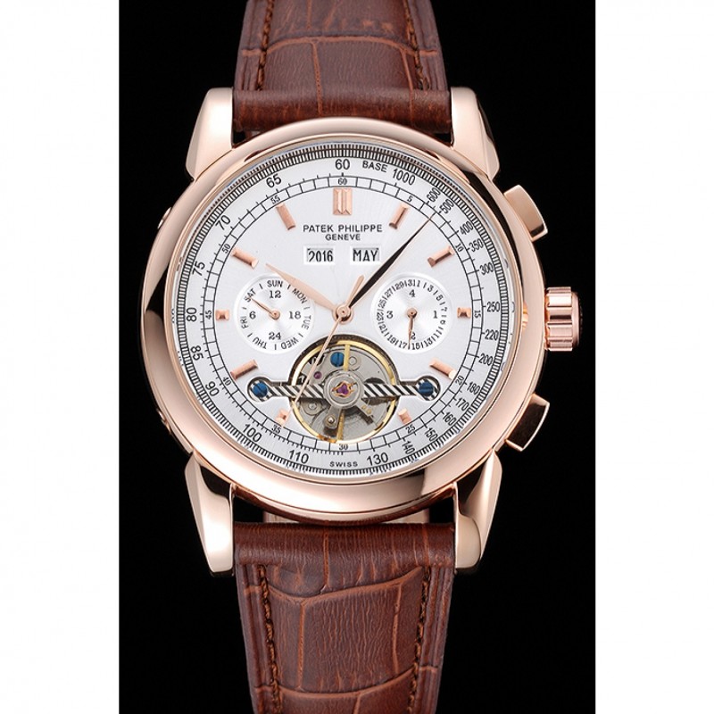 Patek Philippe Grand complicaciones Caja Oro esfera blanca de cuero marrón pulsera 622259