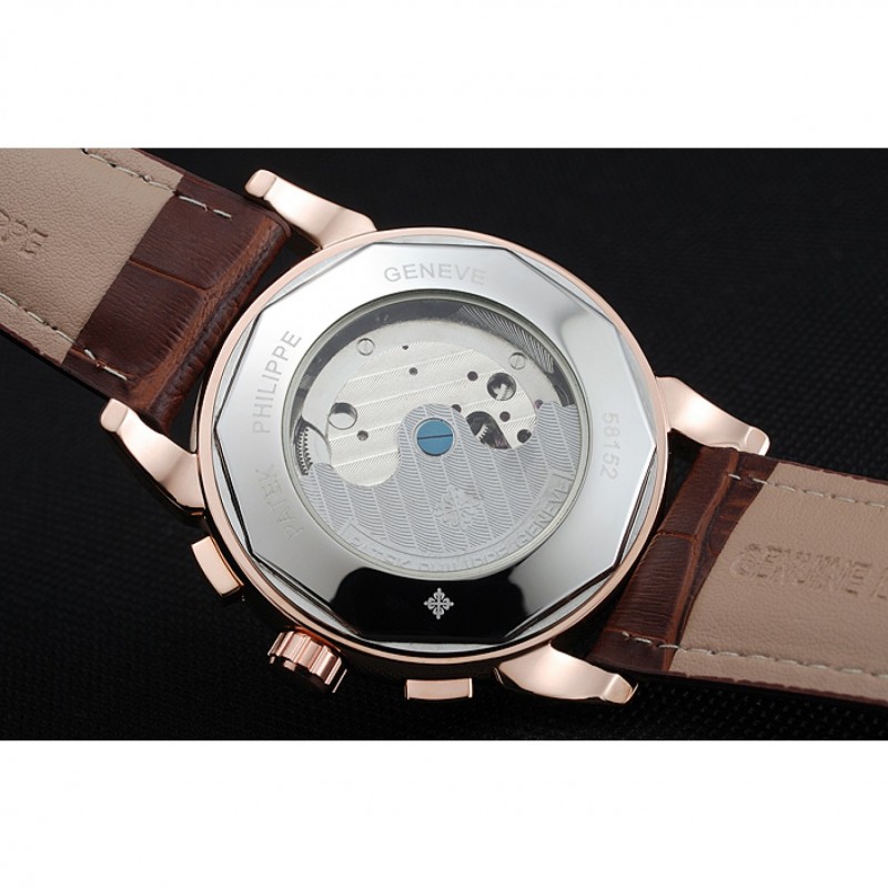 Volver: 18k Rose- chapado en oro complemento en la parte trasera con la mecánica transparentes revelando centro y Patek Philippe Geneve grabado