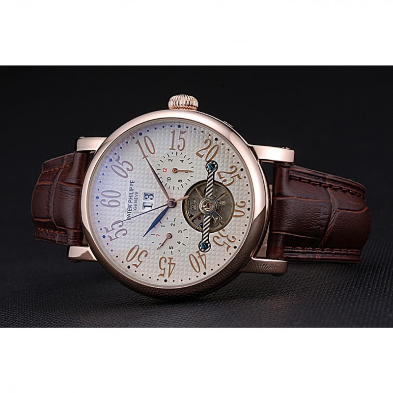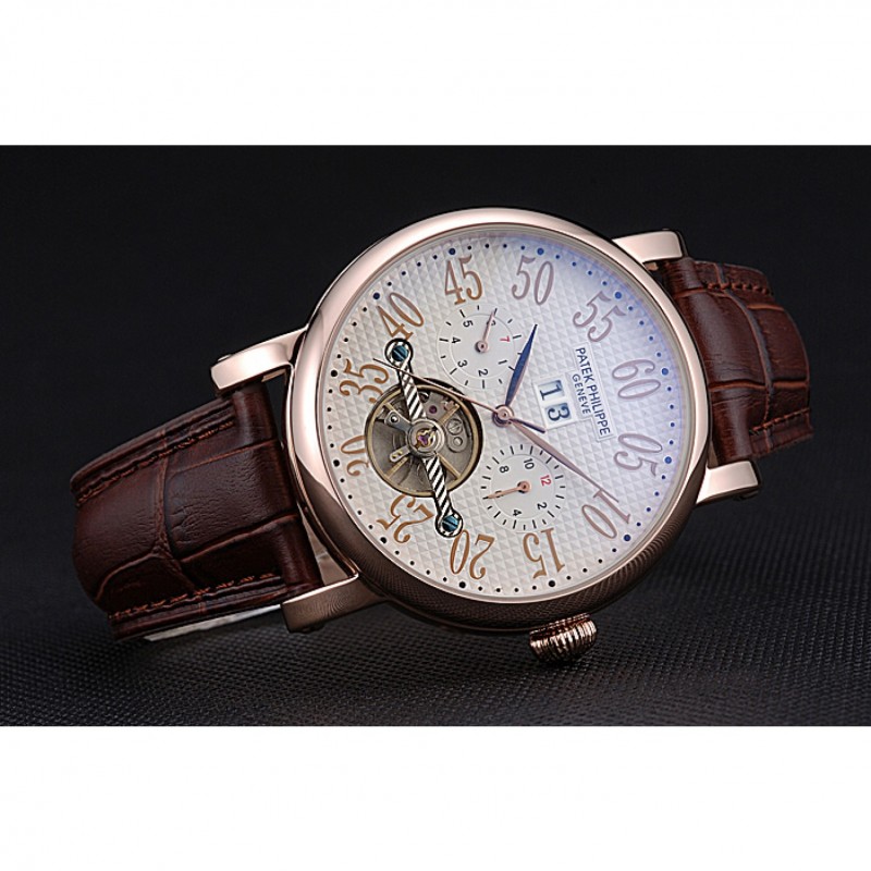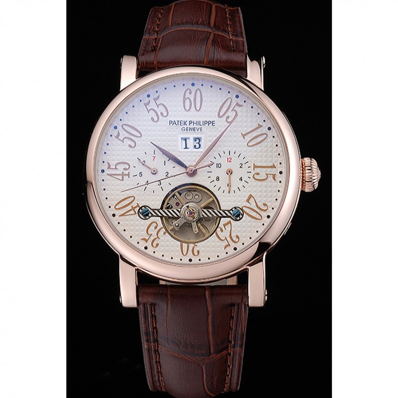 Patek Philippe Grand complicaciones Caja Oro Esfera Blanca, los números árabes Brown pulsera de cuero 622255