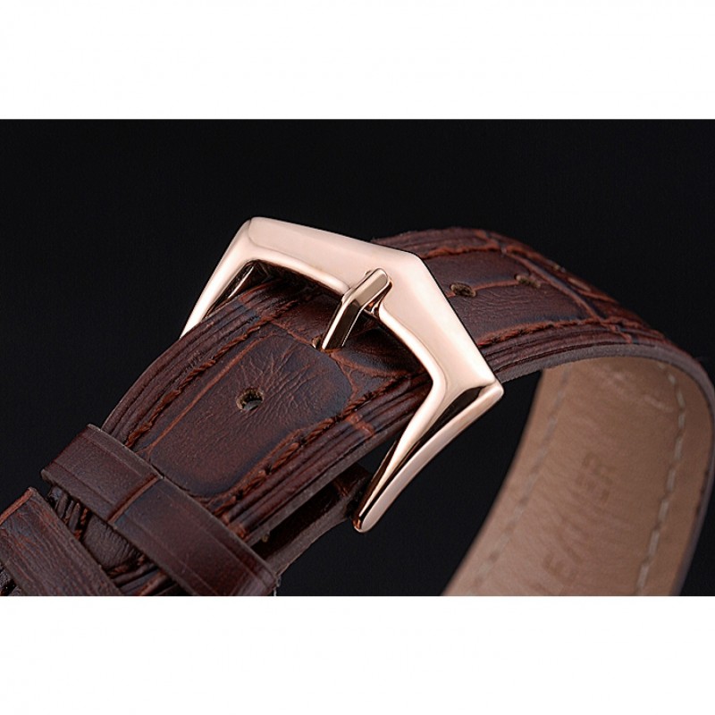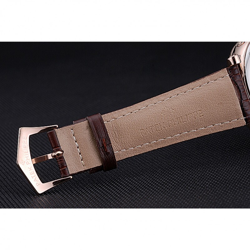 pulsera: logotipo y correa de cuero Patek Philippe Geneve calor en relieve de cocodrilo marrón con rosa de 18 quilates chapado en oro gancho hebilla de cierre