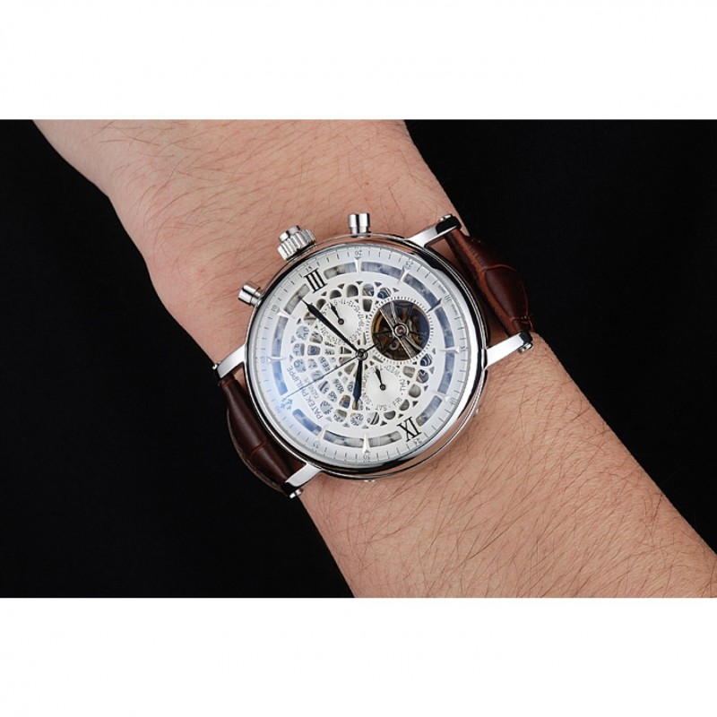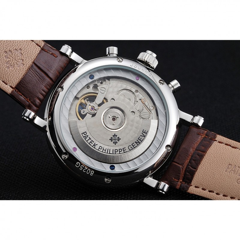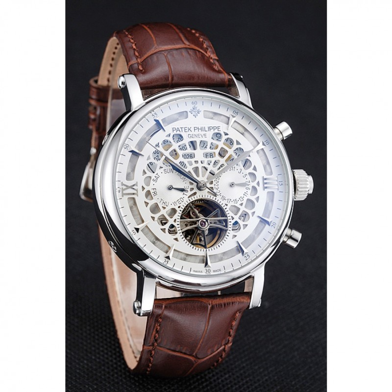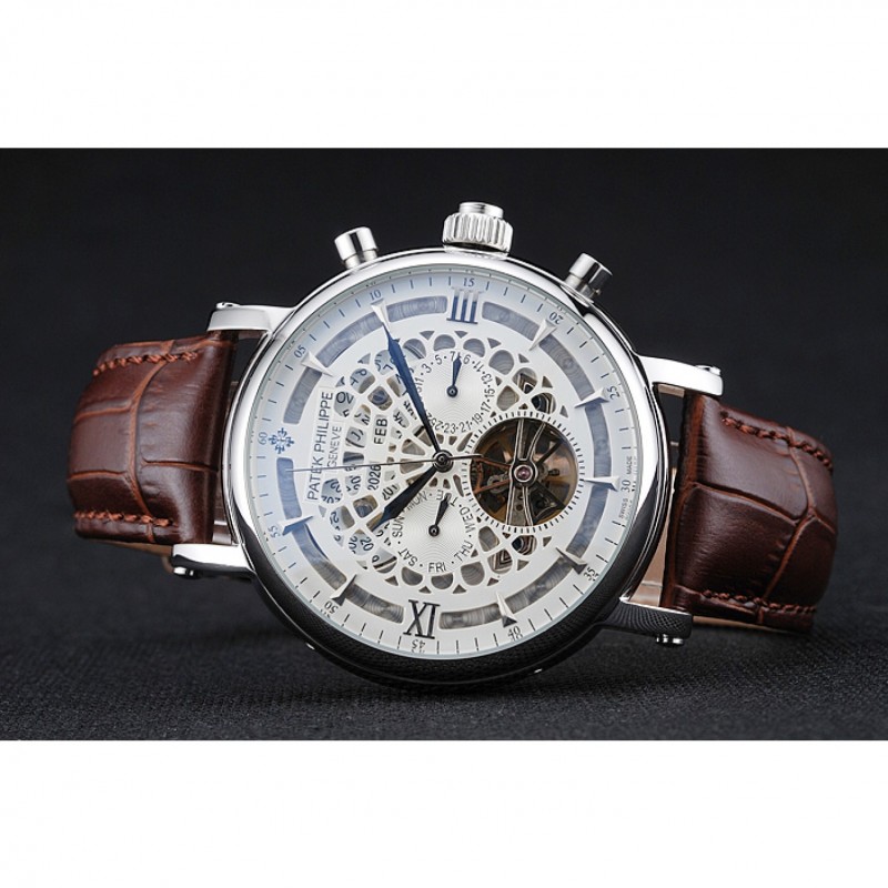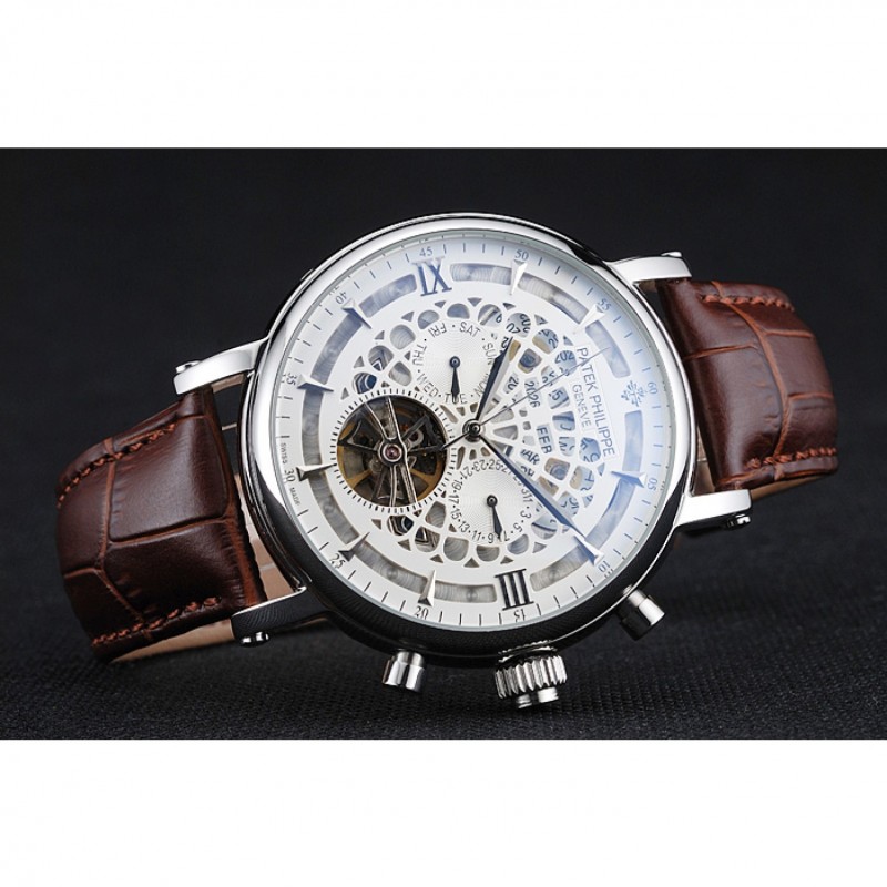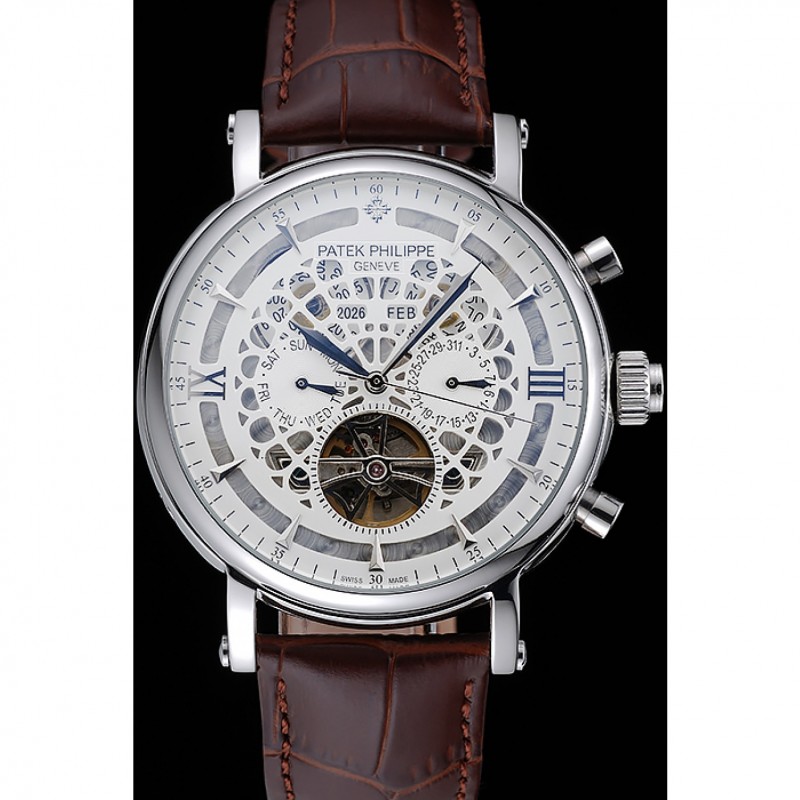 Patek Philippe Grand complicaciones Calendario Anual Blanco Dial de plata del caso Brown pulsera de cuero 1454233