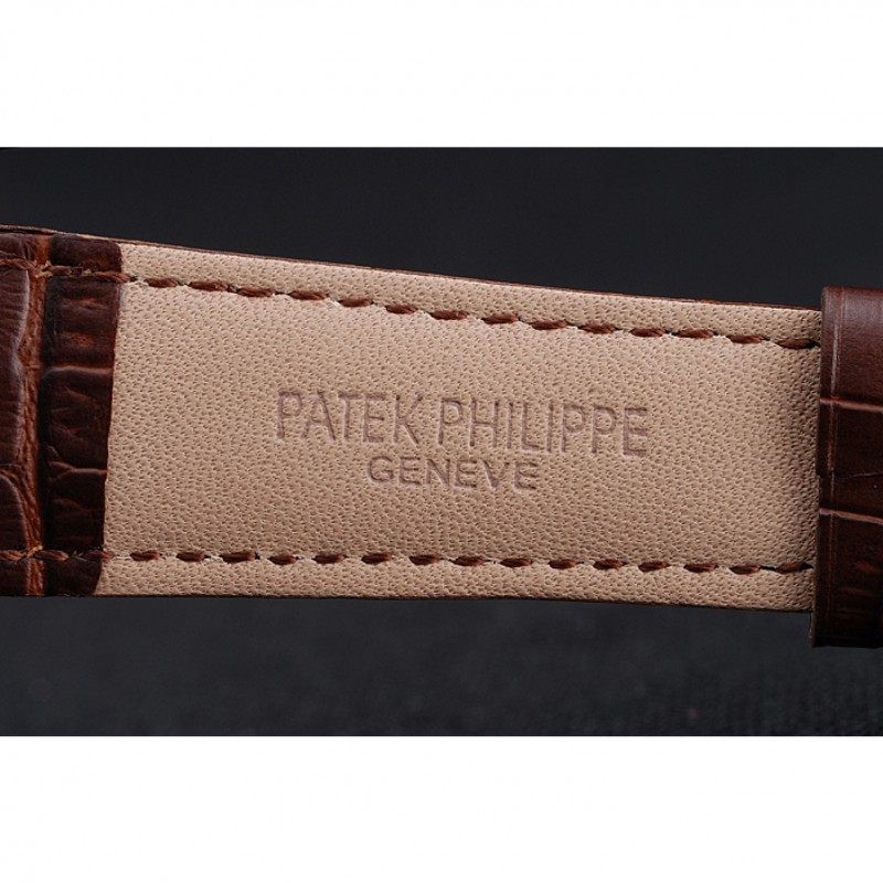 pulsera: correa de piel de cocodrilo marrón de calor Patek Philippe Geneve en relieve con acero inoxidable pulido gancho hebilla de cierre