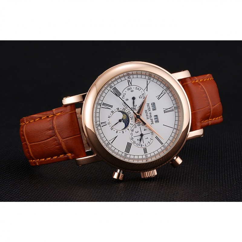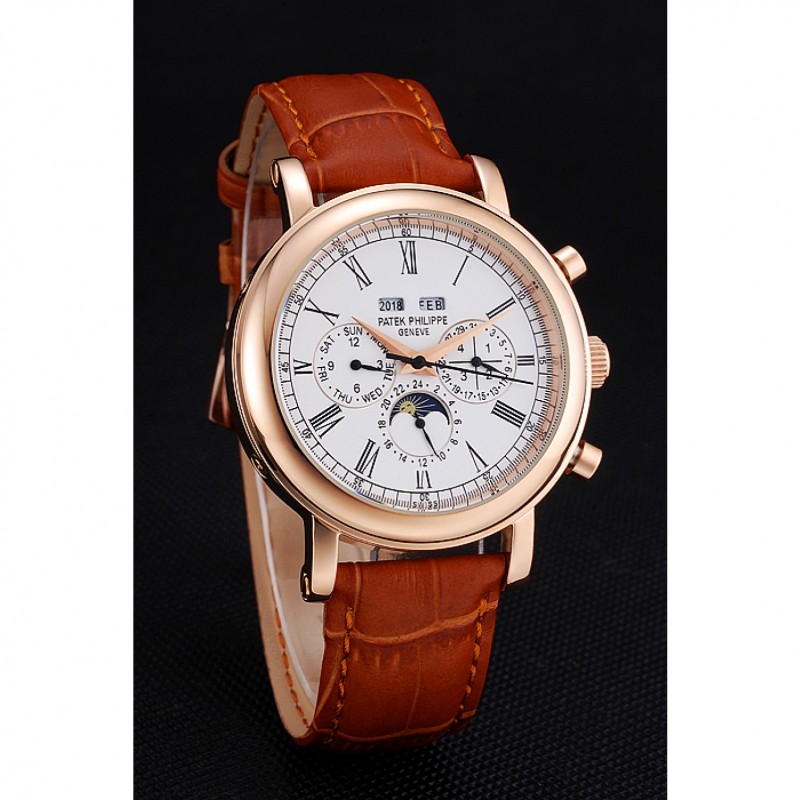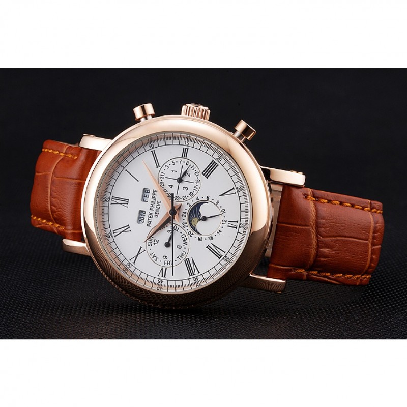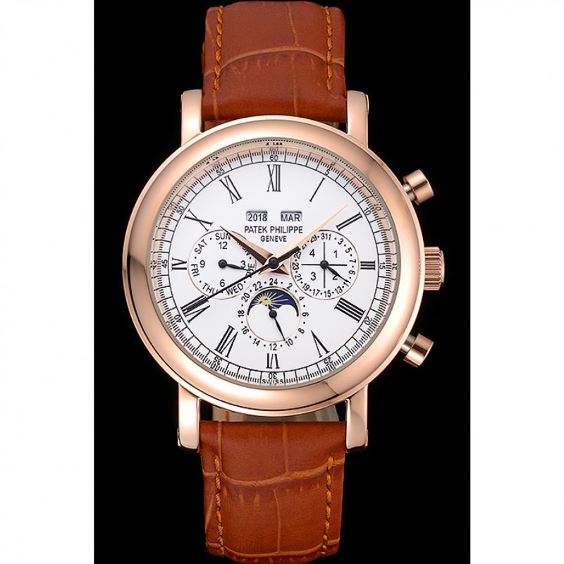 Patek Philippe Grand complicaciones calendario perpetuo esfera blanca pulsera de cuero marrón