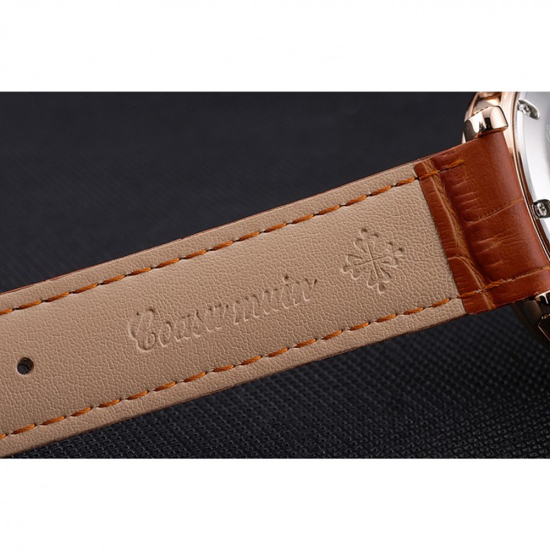pulsera: Brown correa de cuero con el sello de Patek Philippe y una de oro rosa pliegue en el corchete