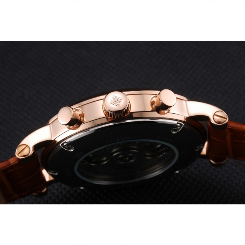 corona: corona de oro rosa con Patek logo grabado y dos coronas más pequeñas a cada lado