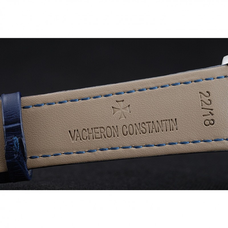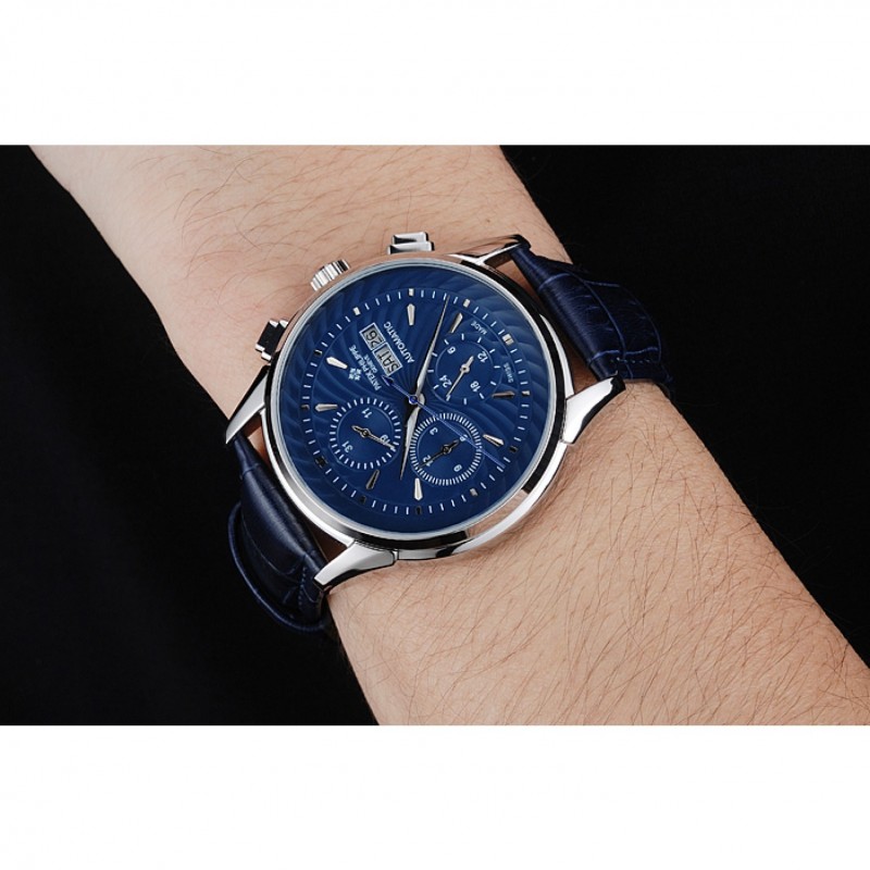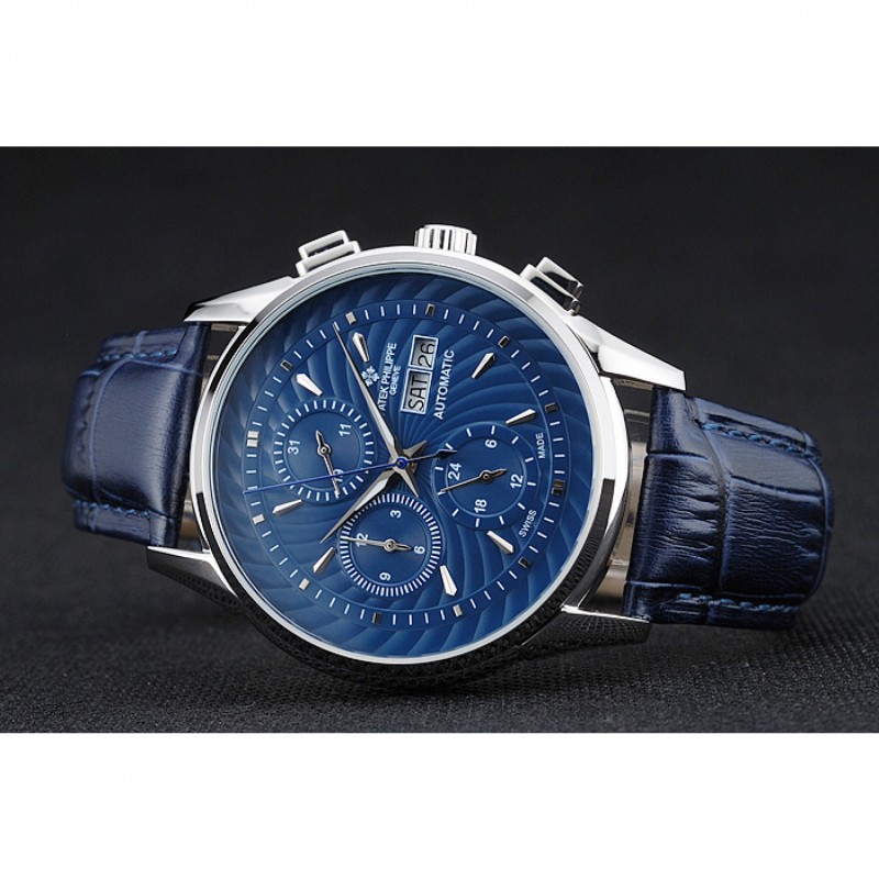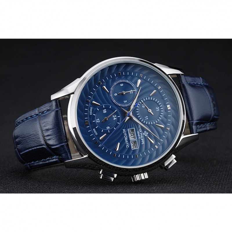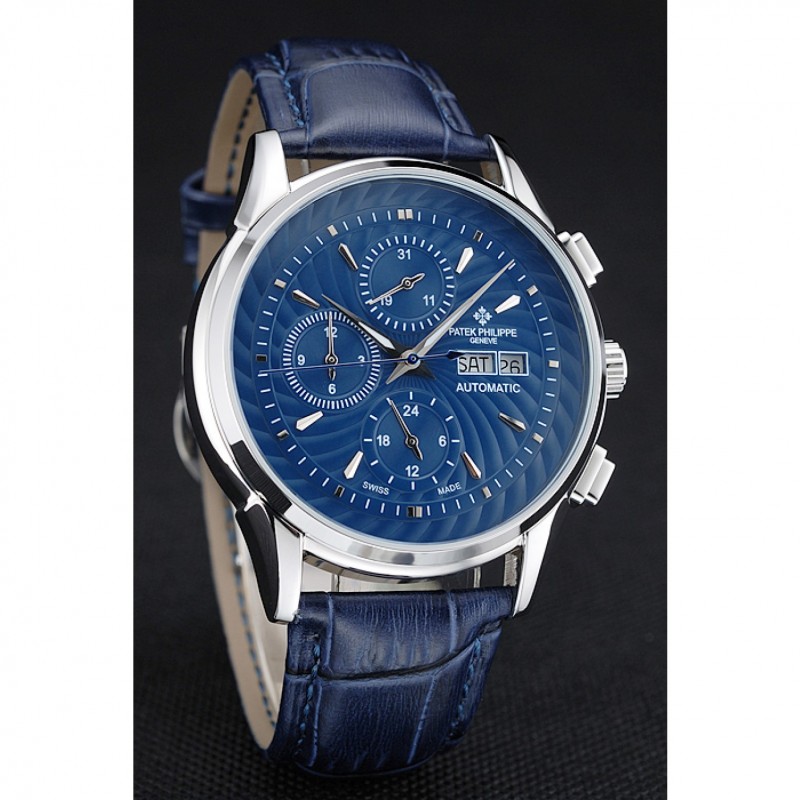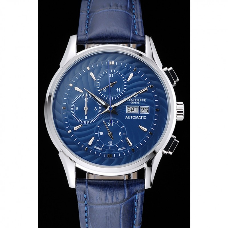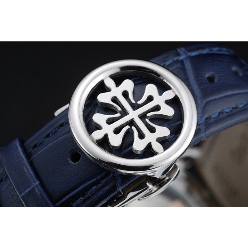 pulsera: Patek Philippe y correa de cuero de calor logotipo en relieve de cocodrilo azul con el logotipo de Patek Philippe talladas de acero inoxidable pulido gancho hebilla de cierre