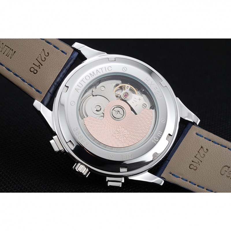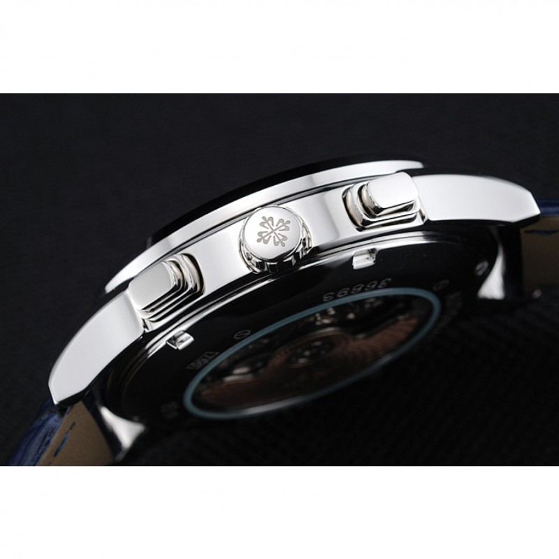 Patek Philippe Grand complicaciones Esfera Azul Azul Caso de plata pulsera de cuero 1454241