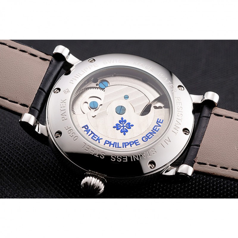 Volver: atornillada en acero inoxidable pulido inoxidable de nuevo con transparentes mecánica-revelando atrás y Patek Philippe Geneve grabado