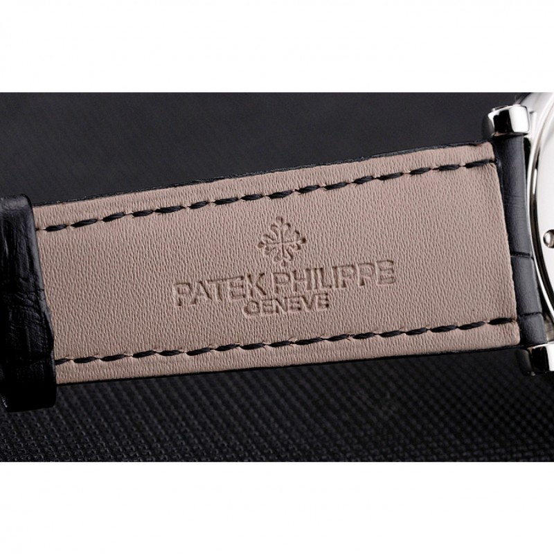 pulsera: Logo y Patek calor Philippe repujado correa de piel de cocodrilo negro con el logotipo y Patek Philippe grabado de acero inoxidable pulido gancho hebilla de cierre