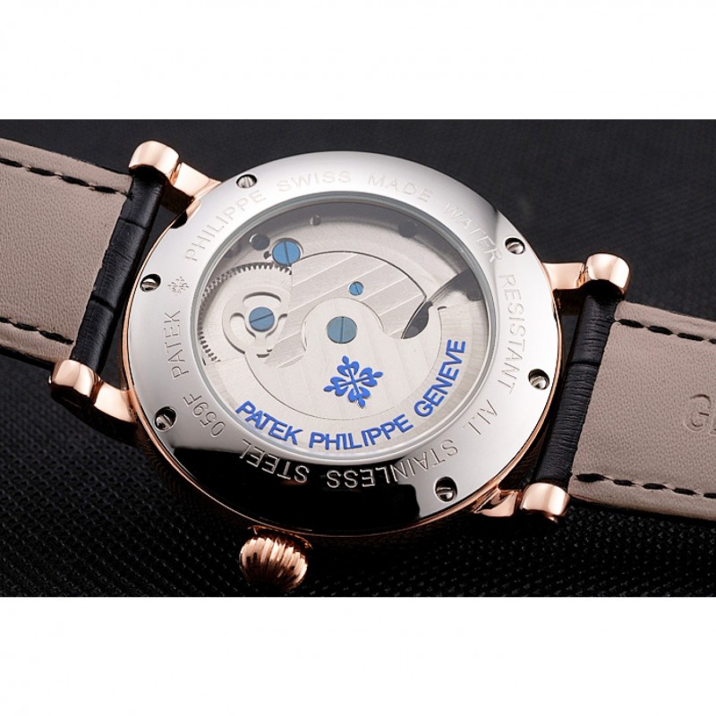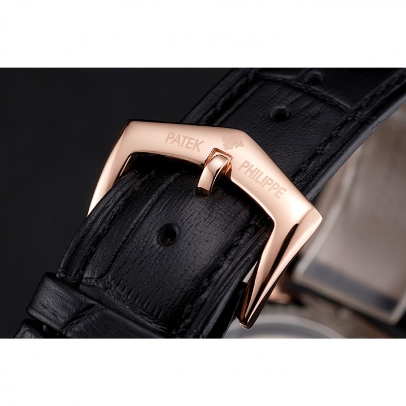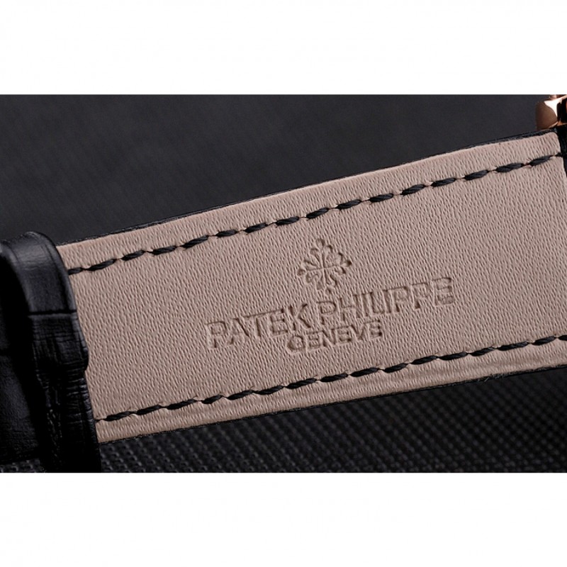 pulsera: logo y el calor Patek Philippe en relieve correa de piel de cocodrilo negro con el logotipo y Patek Philippe grabados rosa de 18 quilates chapado en oro gancho hebilla de cierre