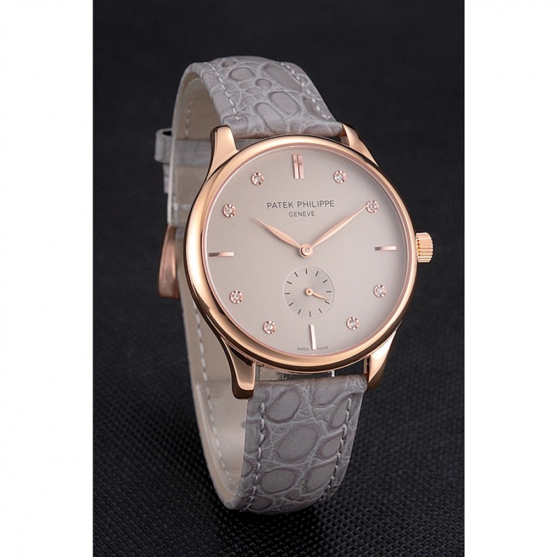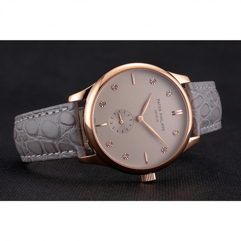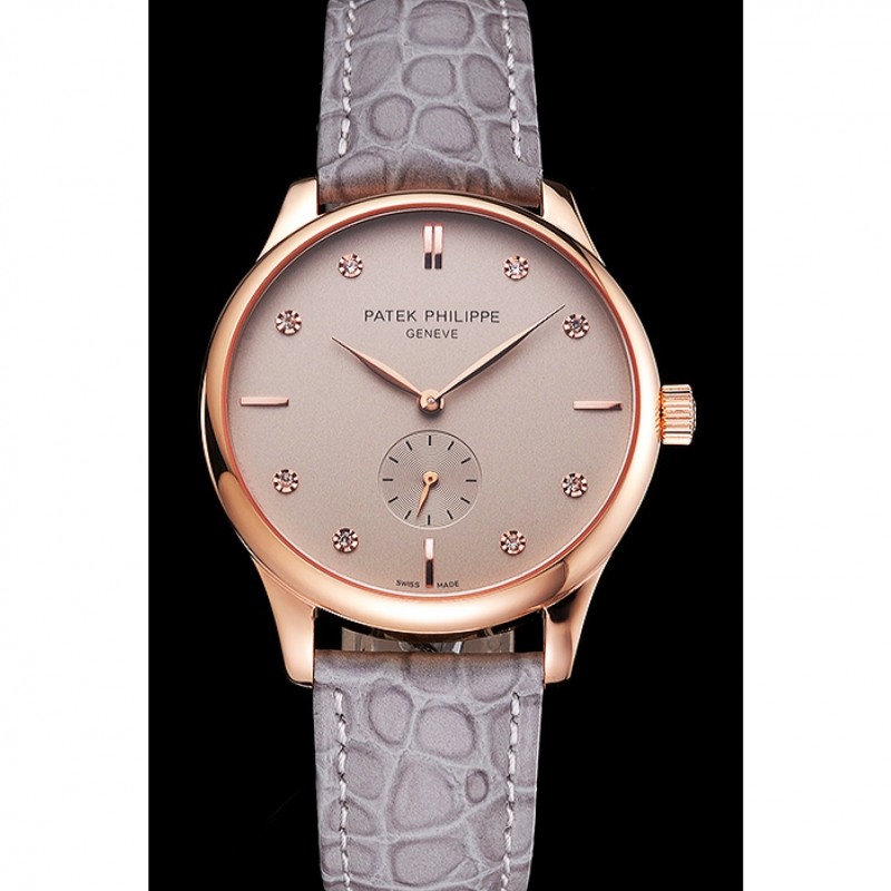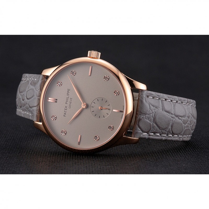 Patek Philippe Gris Dial correa de cuero del diamante Marcas Caja Oro Rosa Gris