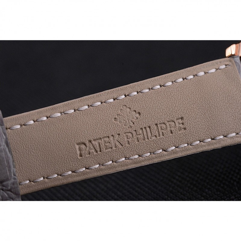 pulsera: Patek Philippe y el calor logotipo en relieve correa de piel de cocodrilo gris con Patek Philippe y el logotipo 18k inscrito oro rosa plateado gancho hebilla de cierre