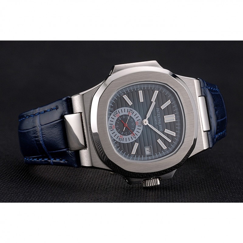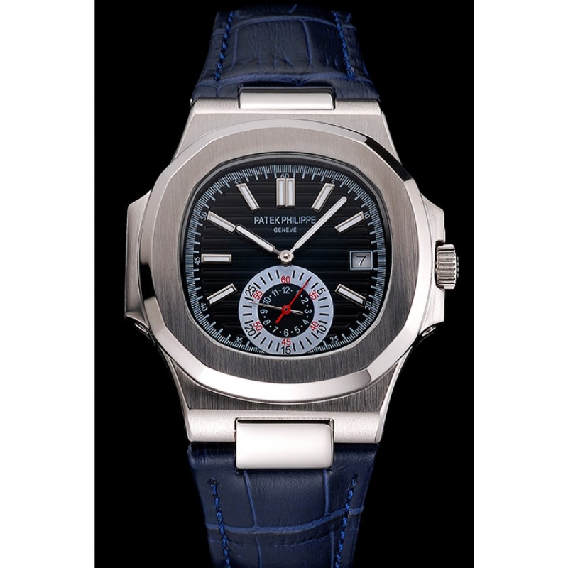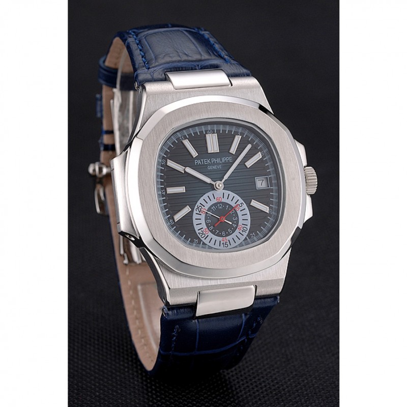 Patek Philippe Nautilus azul Dial correa de cuero caja de acero inoxidable Azul