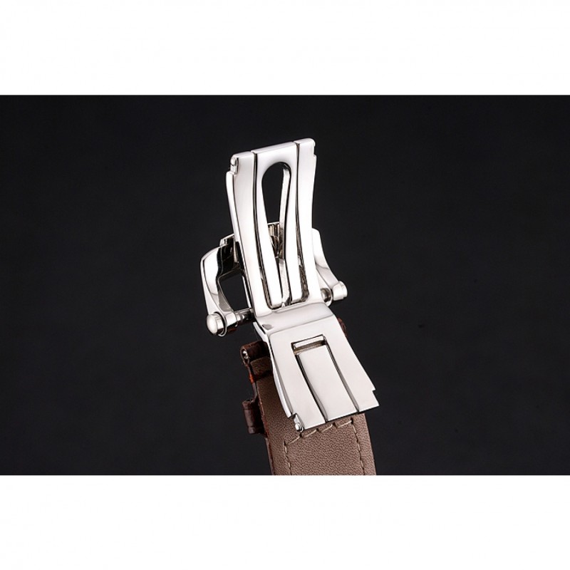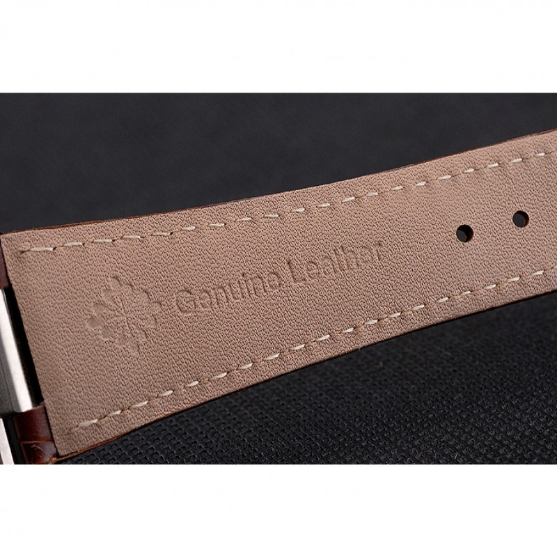 pulsera: correa de piel de cocodrilo marrón en relieve calor Patek Philippe Geneve con Nautilus grabado de acero inoxidable pulido de gancho hebilla de cierre
