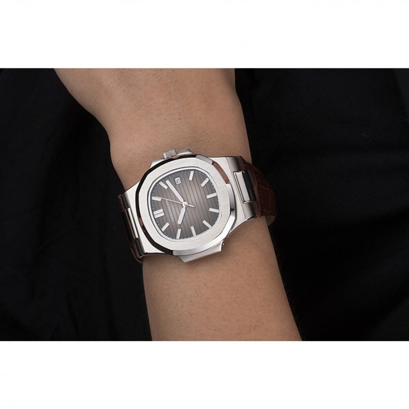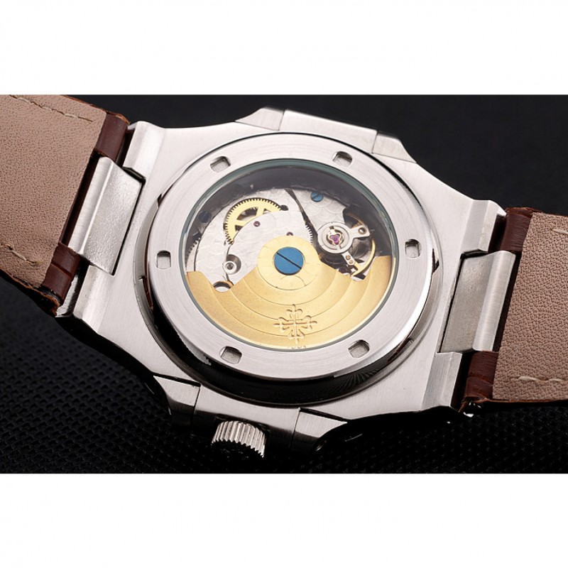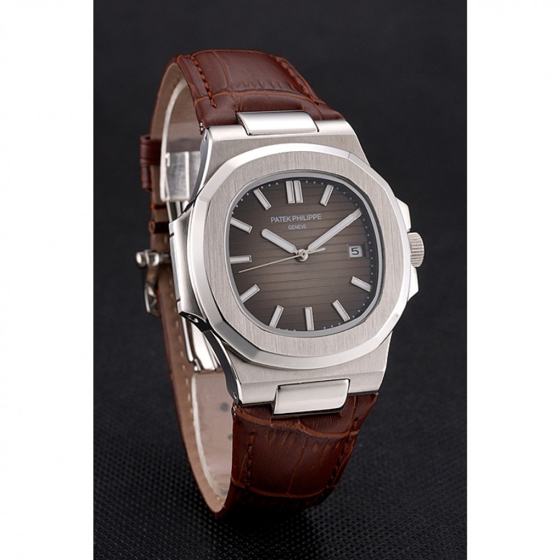 Patek Philippe Nautilus Brown Dial correa de cuero de acero inoxidable cepillado caja Brown
