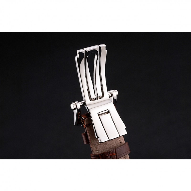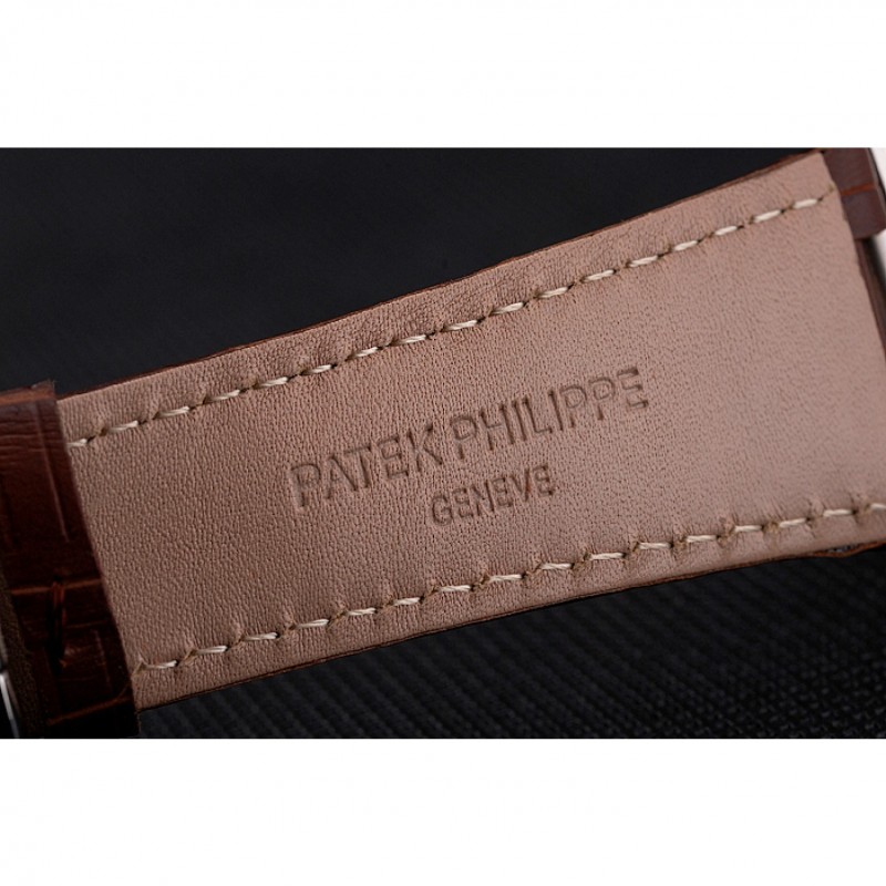 pulsera: correa de piel de cocodrilo marrón en relieve calor Patek Philippe Geneve con Nautilus grabado de acero inoxidable pulido hebilla de cierre
